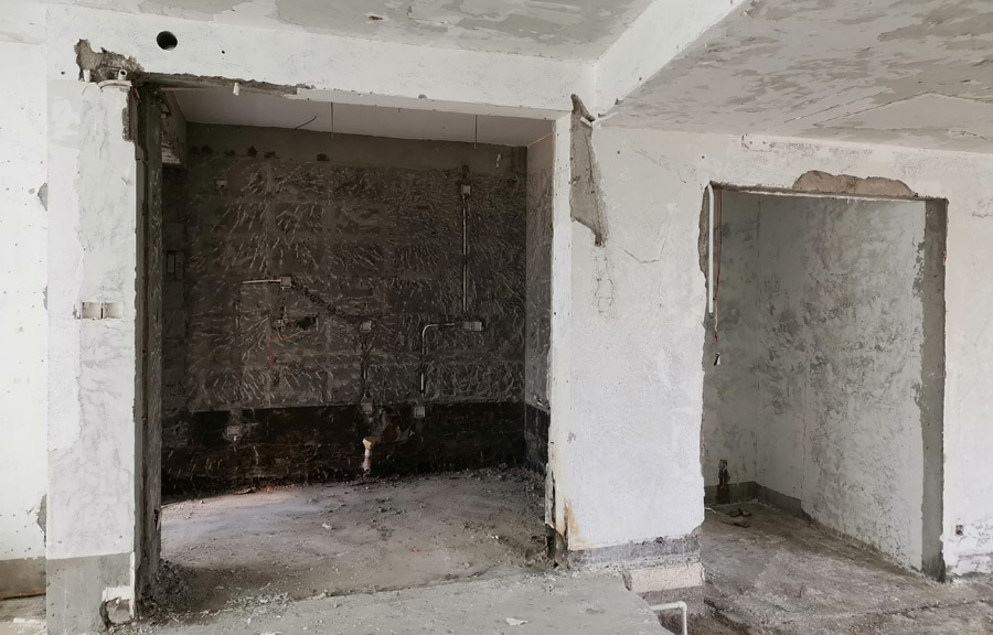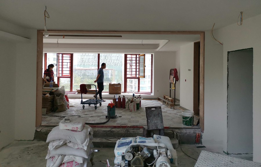 業主與設計師確認好平面布局方案、施工圖和效果圖后,到物業進行報建成功后,正式進入到基礎施工階段。首先是要把工地的框架搭起來,主要的內容有:現場保護、拆墻、砌墻、基層處理等
