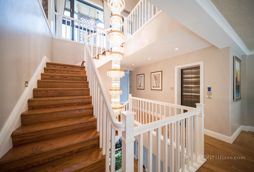 樓梯是連接上下層的橋梁,新穎別致、典雅,配合中間的環柱,讓空間顯得別有一番風味。