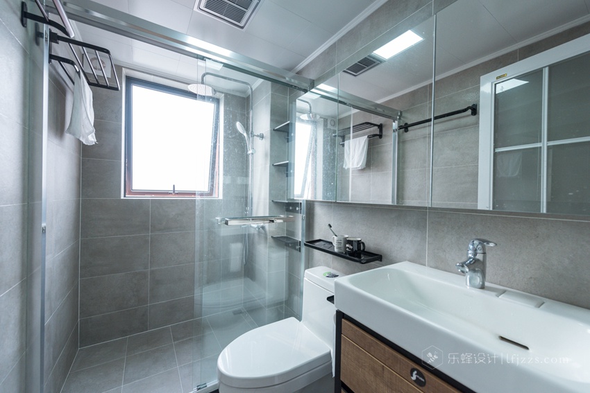 整個衛生間以不同彩色的仿舊磚作鋪貼,讓空間耐臟、耐磨,干濕分離的設計極大地方便了生活,再加上盥洗柜的組合設計,絕對實用大氣。