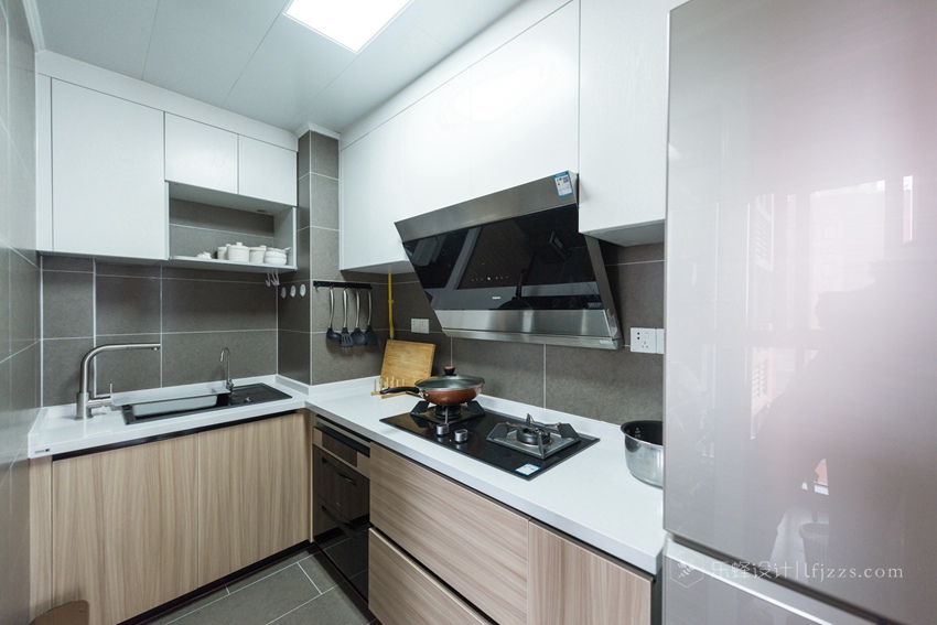 廚房現代感十足,整體的設計以操作分區的方式,讓動線更為清晰,設計更是實用,讓生活夠便捷和舒適。