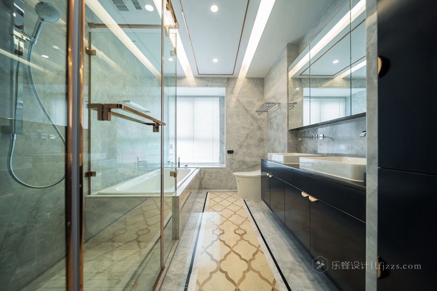 衛生間合理規劃各個功能區,有浴缸區、淋浴間區、洗手臺區、抽水馬桶區;盥洗柜以精致臺面成就規整,讓盥洗也愈加利落、便捷。