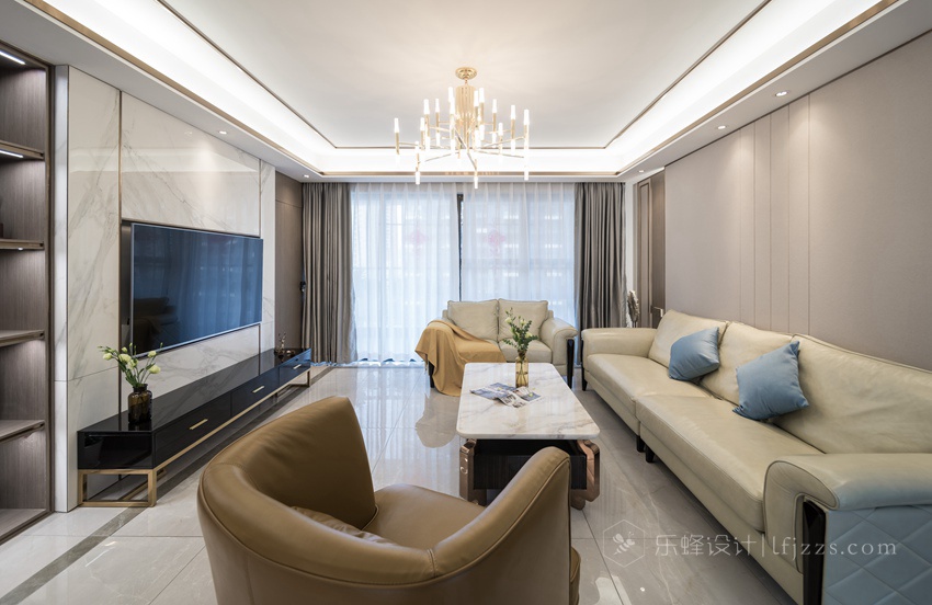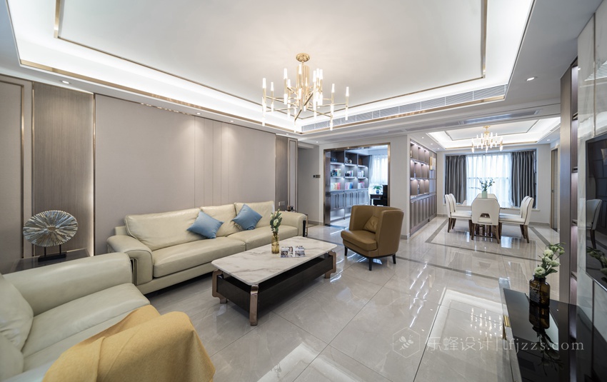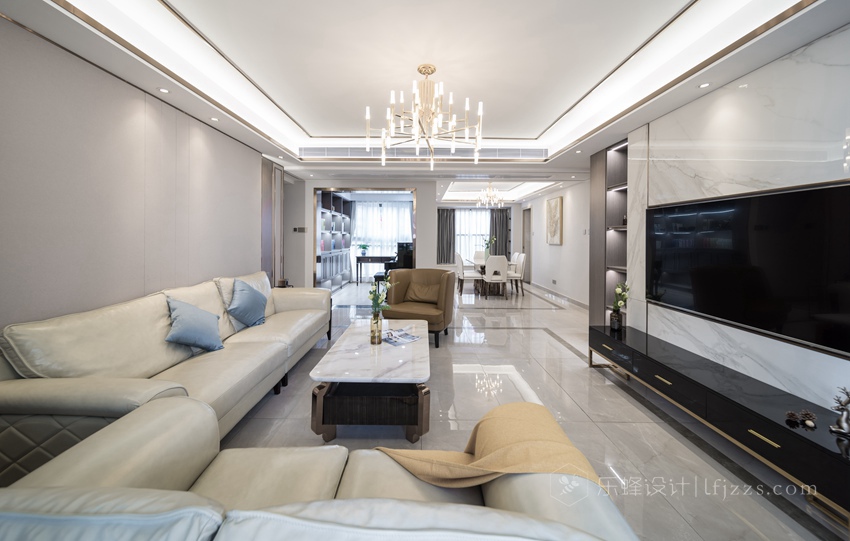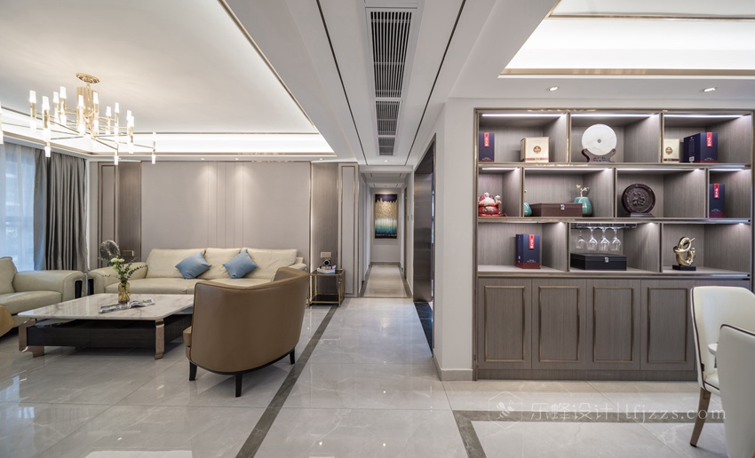 在視覺上舍棄張揚,通過對線條與色塊的巧妙應用,營造出輕松的空間氛圍,傳遞“輕奢華、新時尚”的生活理念。