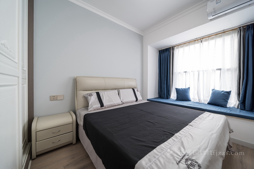 次臥以簡約線條為主的衣柜通過黑白組合,讓家看上去更為利整;窗邊的抱枕搭配,讓簡約風的空間多了更多的藝術性。