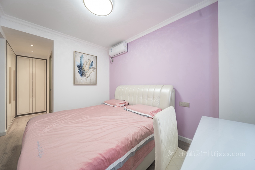 以舒適輕松為主的臥室,有干爽陽光的清香,亦有文藝范的味道,讓生活足夠舒適溫馨;米色的墻面因為黑白抽象掛畫、灰色窗簾,冷暖之間,構成生活的質感。