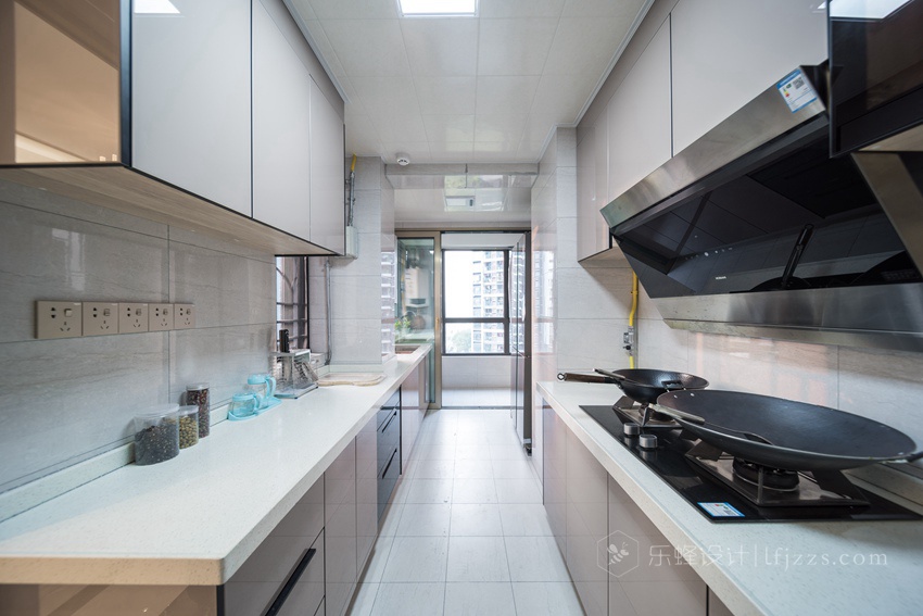 廚房空間充足,所以分區的設計,將功能做了簡單的劃分,使用起來也會更方便;左邊作為切菜洗菜備菜功能區,而右邊在主烹飪廚藝之用。原木地柜的收納設計,讓生活足夠實用、貼心。
