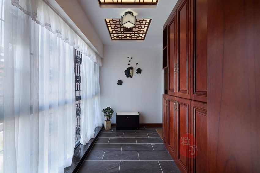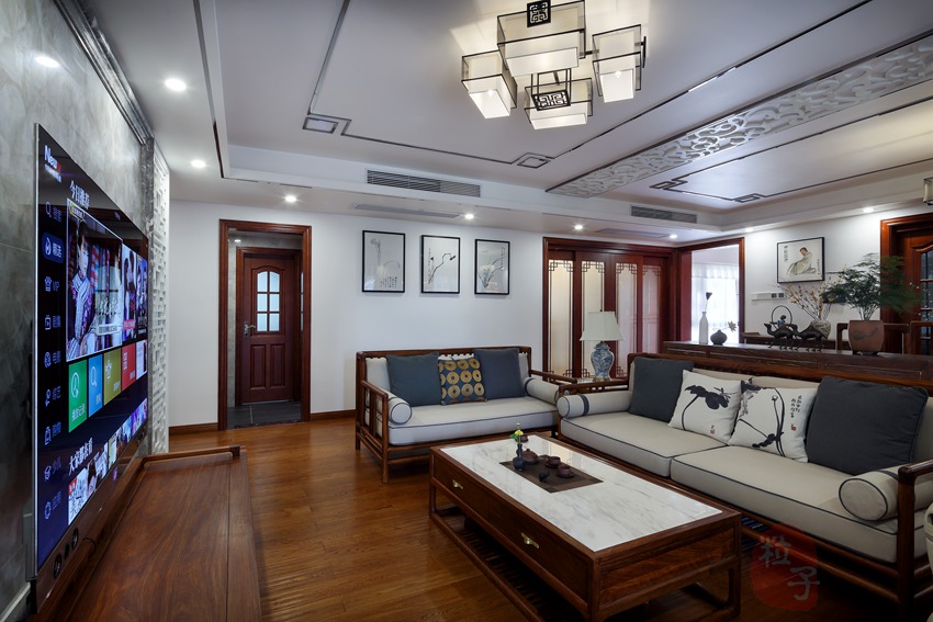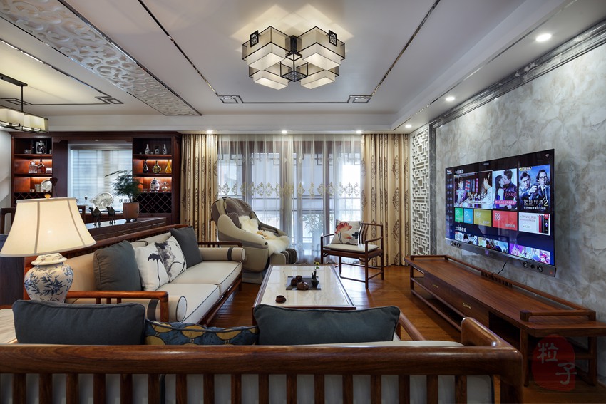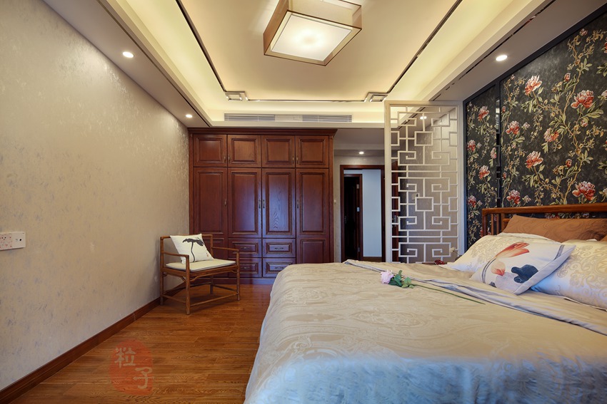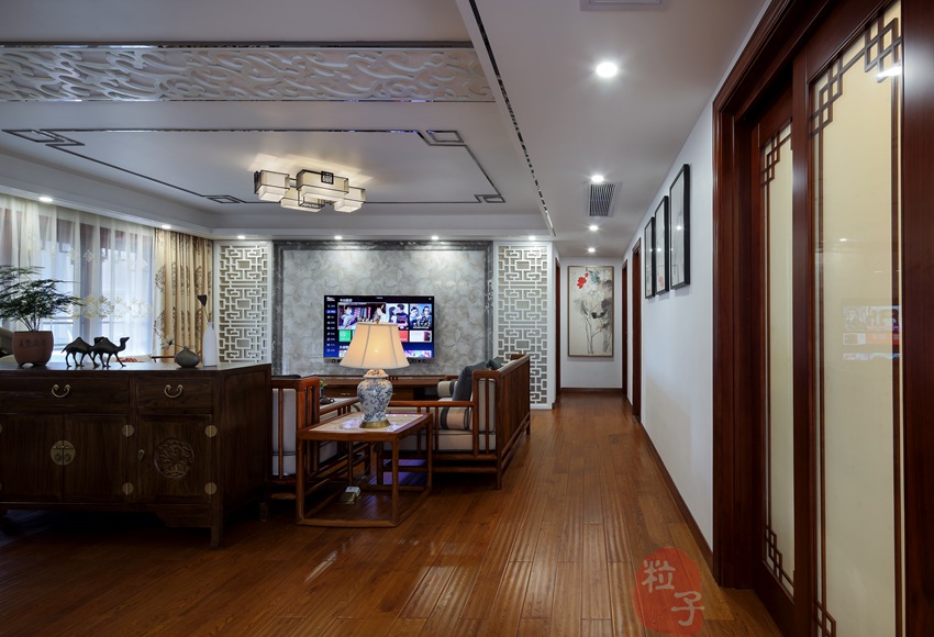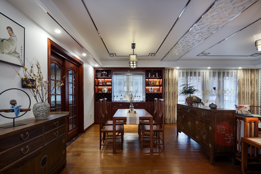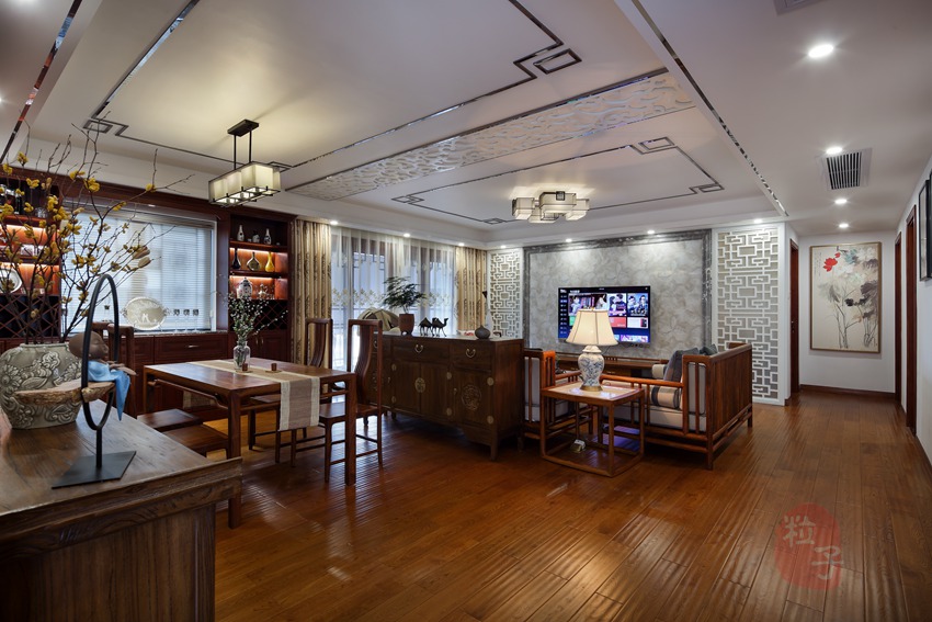 本案業主一位成功人士,對中式的古典文化有濃厚的情感,設計師依據中式文化并結合現代化元素來打造。整個空間從入戶門到客廳、餐廳、臥室用中式簡潔、硬朗的線條。處處體現中式風格的內斂、莊嚴、優雅、質樸,運用直線裝飾線條體現現代人追求簡單生活的居住氛圍,更迎合了現代氣息,這樣使中式風格更加實用,富有現代色彩。