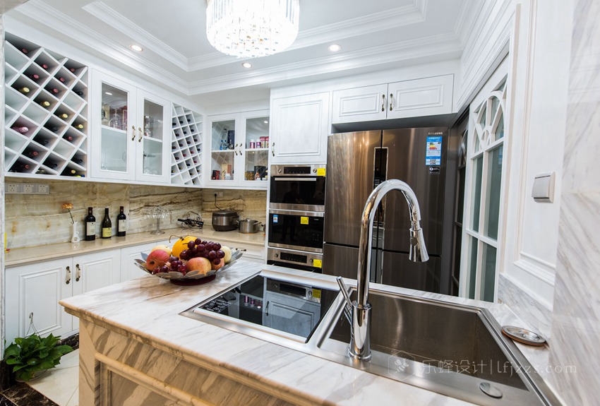 廚房空間多了很多細節,分化功能區,也增加了一些新的創意設計元素。比如可以倒放很多瓶罐的柜槽,讓原本的空間多了現代感。