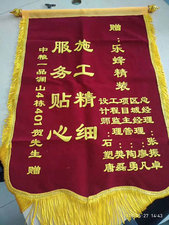 大家早上好,非常感謝貴公司各位領導的大力支持與熱情服務。使得我們的裝修順利進行,目前即將完成。在此特別感謝的是陶工,在裝修過程中非常用心,積極。對細節思慮周到,人也勤快,給他點個贊。也感謝設計師石小姐,設計風格符合我們的要求,也會為業主著想。衷心祝愿樂蜂公司百尺竿頭,更進一步。