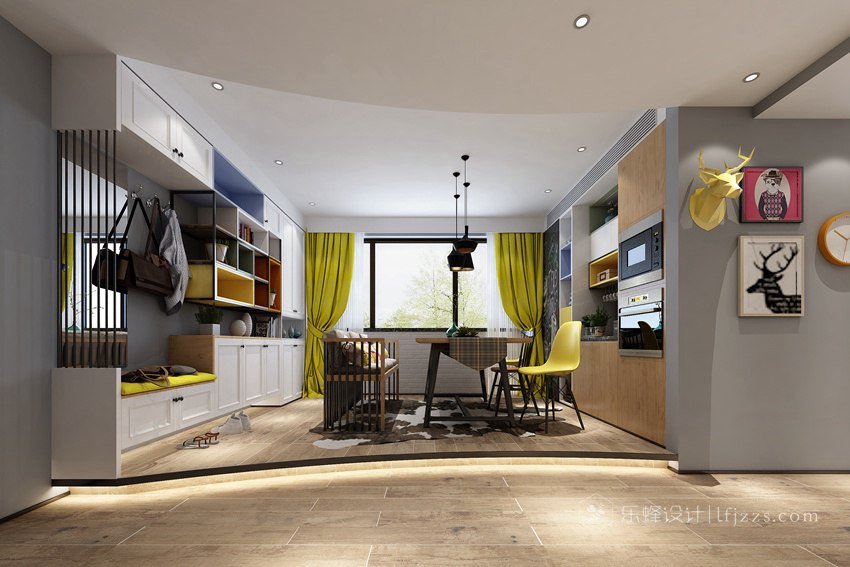 北歐風(fēng)格以淺色為代表,整體感舒適自然,同現(xiàn)代風(fēng)格有著極大的相似,頗受現(xiàn)代年輕人的喜愛(ài)。北歐風(fēng)格的裝修沒(méi)有過(guò)多冗雜的裝飾和花紋,用一種最簡(jiǎn)單、直接、功能化且貼近自然的線條來(lái)表現(xiàn)其寧?kù)o的北歐風(fēng)情。本案以淺灰色為基調(diào),搭配白色、原木色等輔助色,以少量純色作為點(diǎn)綴,整體傾向于淺色系,給人一種干凈明朗的感覺(jué)。