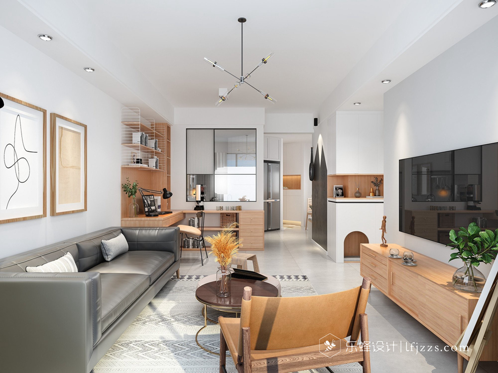 北歐風格以淺色為代表,整體感舒適自然,同現代風格有著極大的相似,頗受現代年輕人的喜愛。北歐風格的裝修沒有過多冗雜的裝飾和花紋,用一種最簡單、直接、功能化且貼近自然的線條來表現其寧靜的北歐風情。本案以淺灰色為基調,搭配白色、原木色等輔助色,以少量純色作為點綴,整體傾向于淺色系,給人一種干凈明朗的感覺。