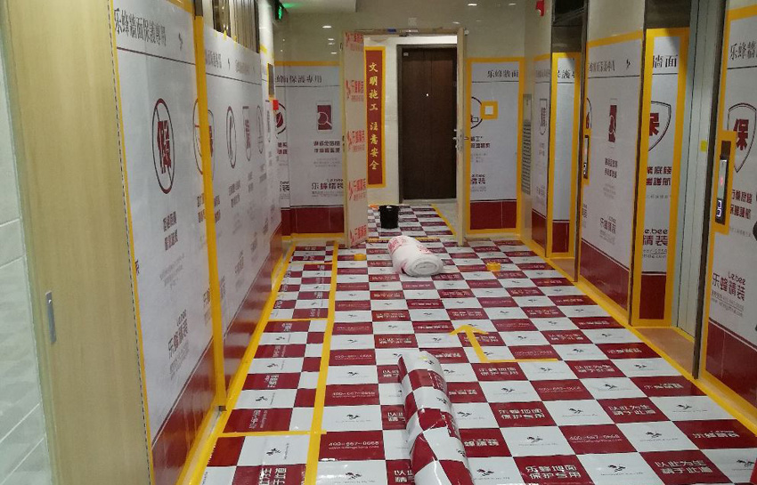 工地開(kāi)工前,會(huì)對(duì)電梯、過(guò)道兩側(cè)、墻面地面及門(mén)窗等用專(zhuān)用材料進(jìn)行保護(hù),陰陽(yáng)角處安裝防撞條,防止在施工中材料進(jìn)出場(chǎng)對(duì)現(xiàn)場(chǎng)造成破壞,導(dǎo)致不必要的損失。