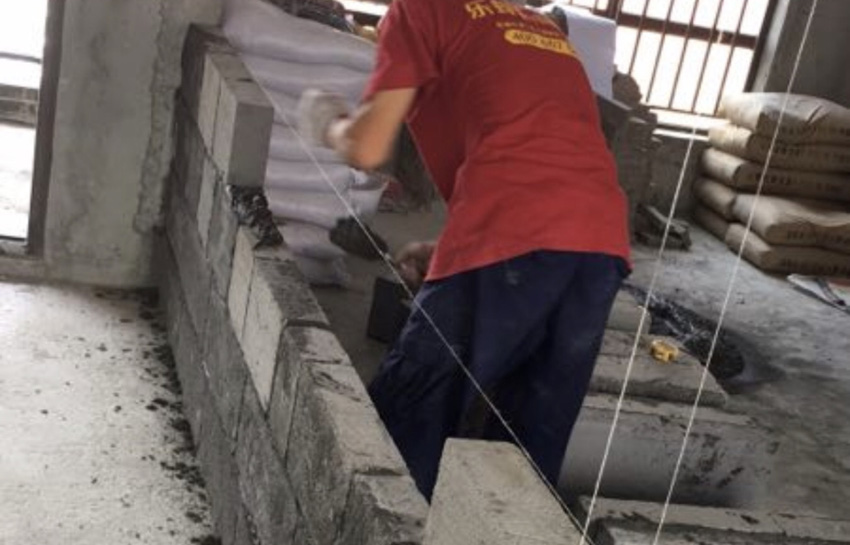 第一步:放樣、彈線、根據施工圖紙,現場確認新砌墻體位置、尺寸。