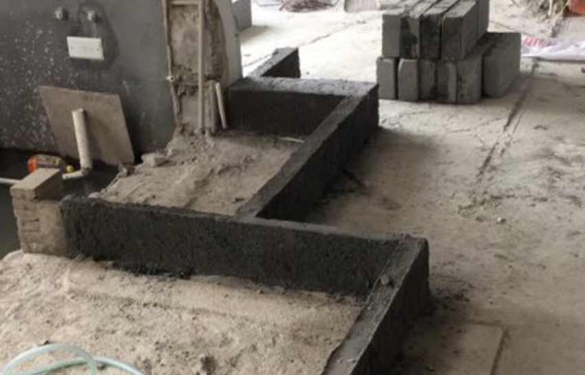 第二步:所有新砌墻必需先倒地梁,地梁下需打掉批蕩層或樓板打毛。