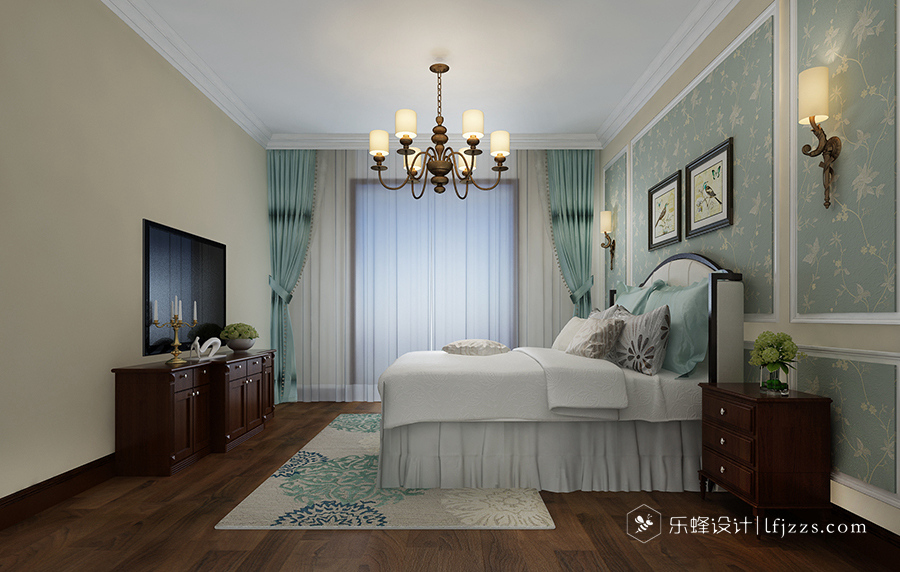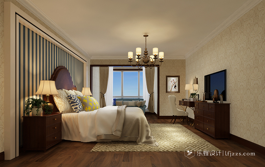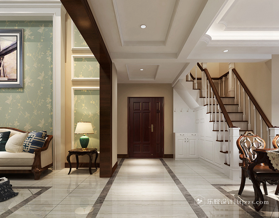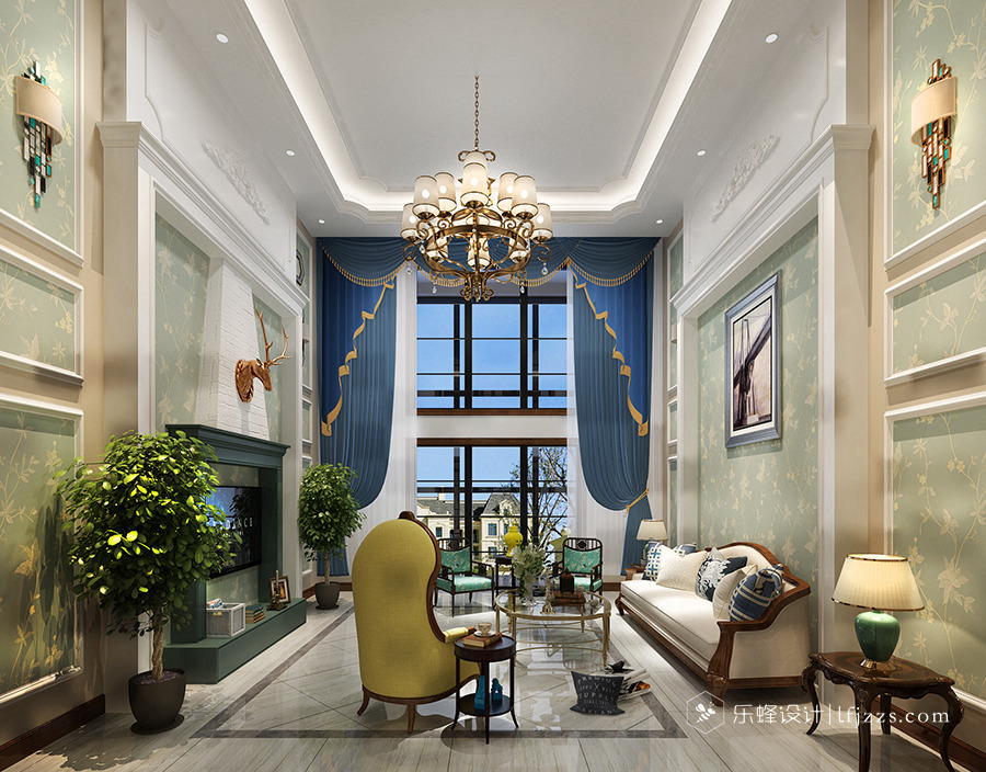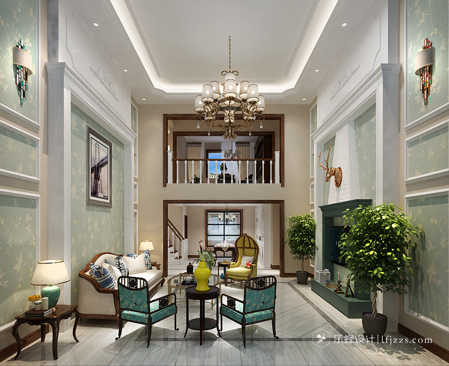本案為美式風格設計,方案以整體空間更加開闊為主,背景墻面裝飾采用了經典的壁爐造型,突出整個空間的氛圍感而其他地方則選擇乳膠漆為主,在特定位置點綴不同的顏色,配上美式的家具和燈具,突出風格氛圍。