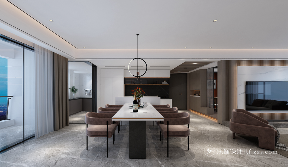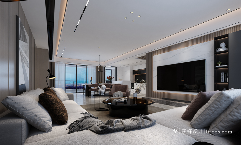 本案為現代簡約風格,整體空間以現代雅致為基調,運用新現代主義設計手法,巧妙糅合空間、文化與生活藝術,打造出一個現代時尚的輕奢空間,彰顯奢華內斂的人文氣度。通過塊面和線條的塑造使其更具包容性。