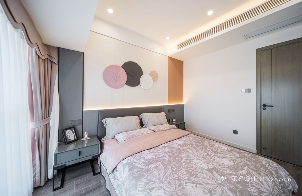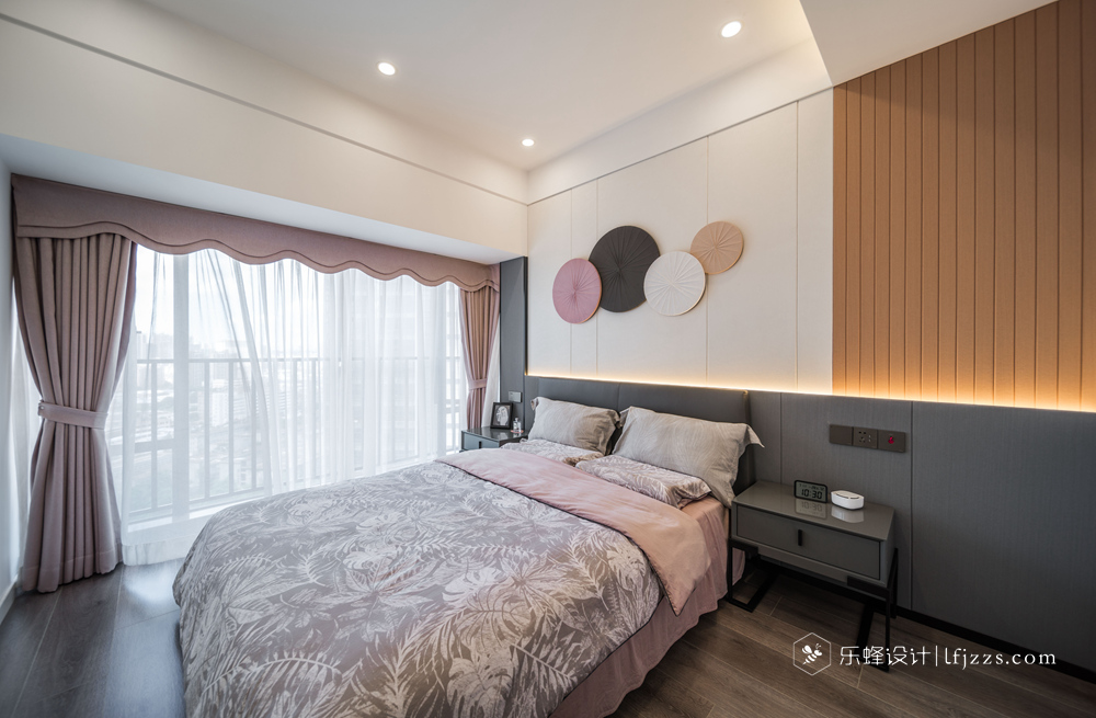 主臥以灰色與木地板搭配,床頭背景墻以棕色與白色的搭配,在布置上不同顏色的裝飾品碰撞,床頭暗藏一層燈帶,平時(shí)晚上起來就開這個(gè)燈就可以滿足照明,也不用打擾到其他人。