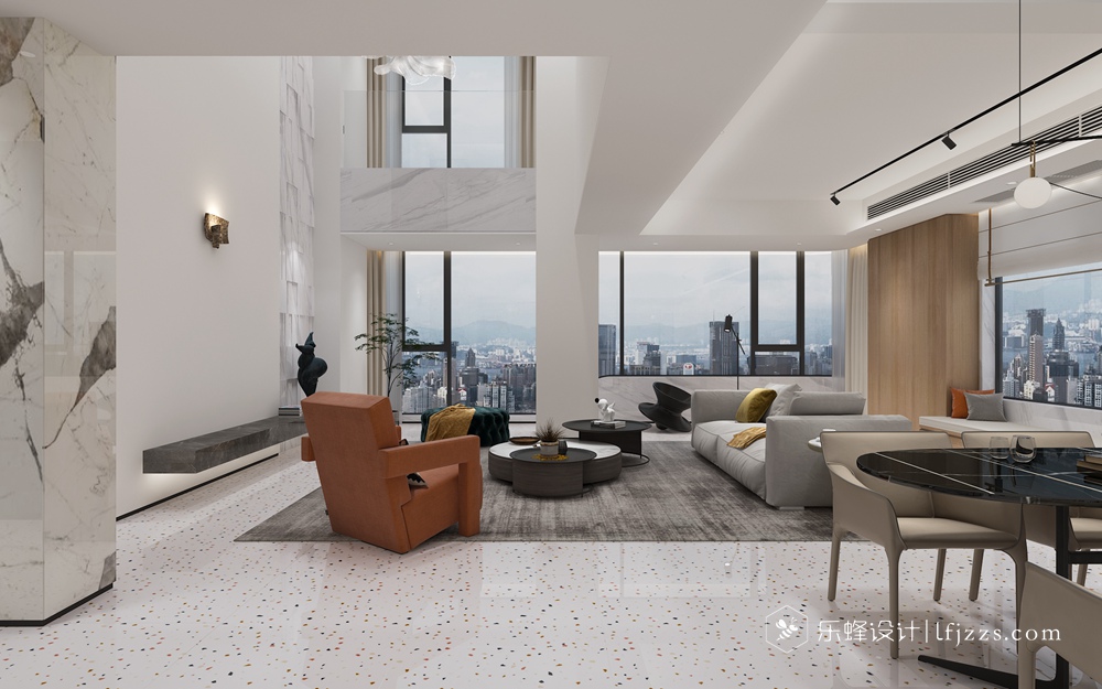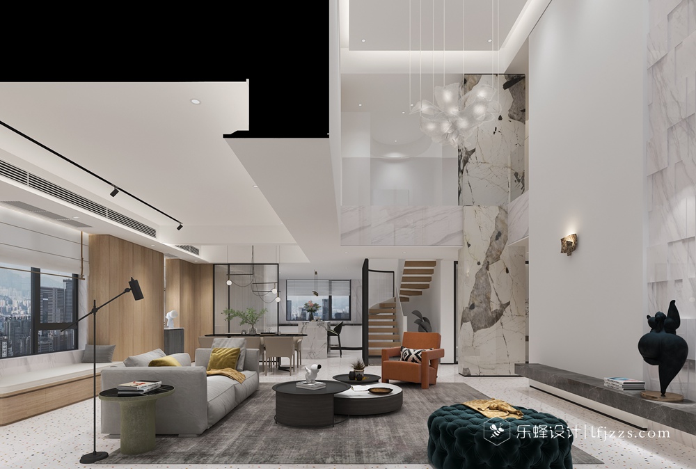 本案為現代簡約風格,整體空間以現代優雅為基礎,運用新的現代主義設計手法,巧妙地將空間、文化與生活藝術相結合,營造出一個現代時尚的輕奢空間,彰顯奢華內斂的人文氣息,它通過塊和線的造型更具包容性。