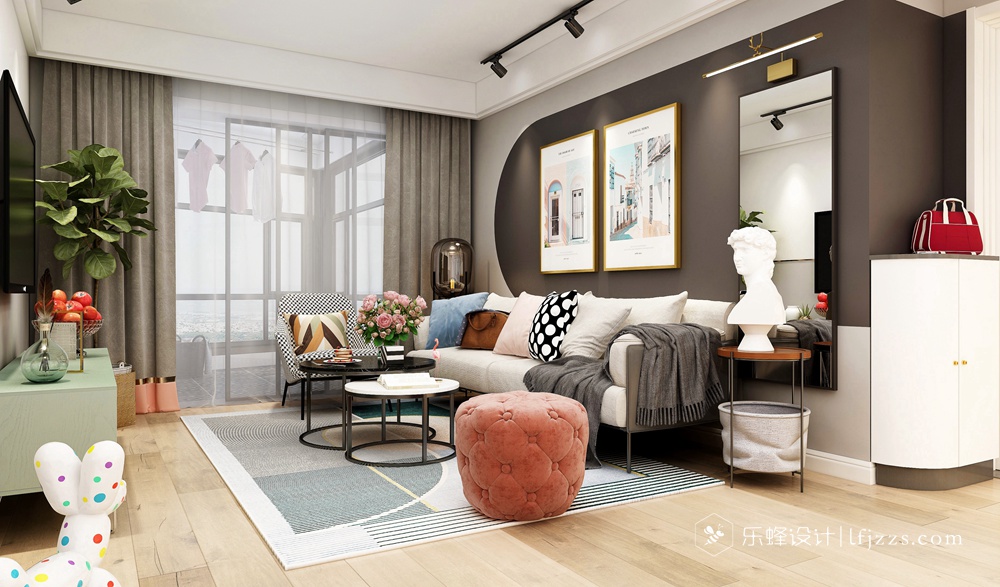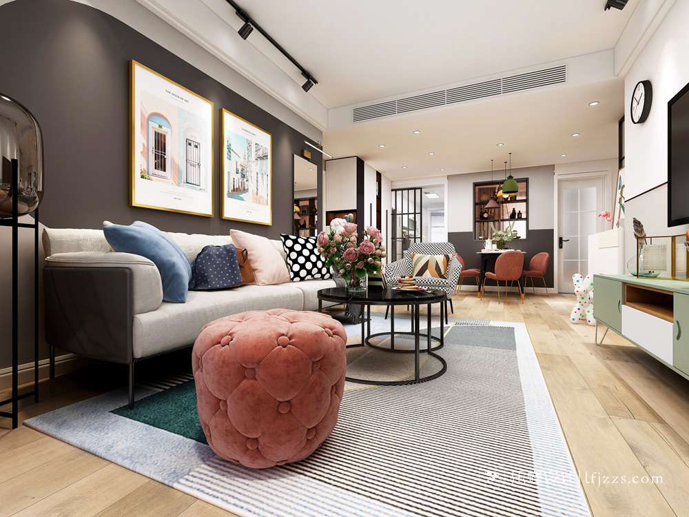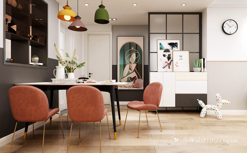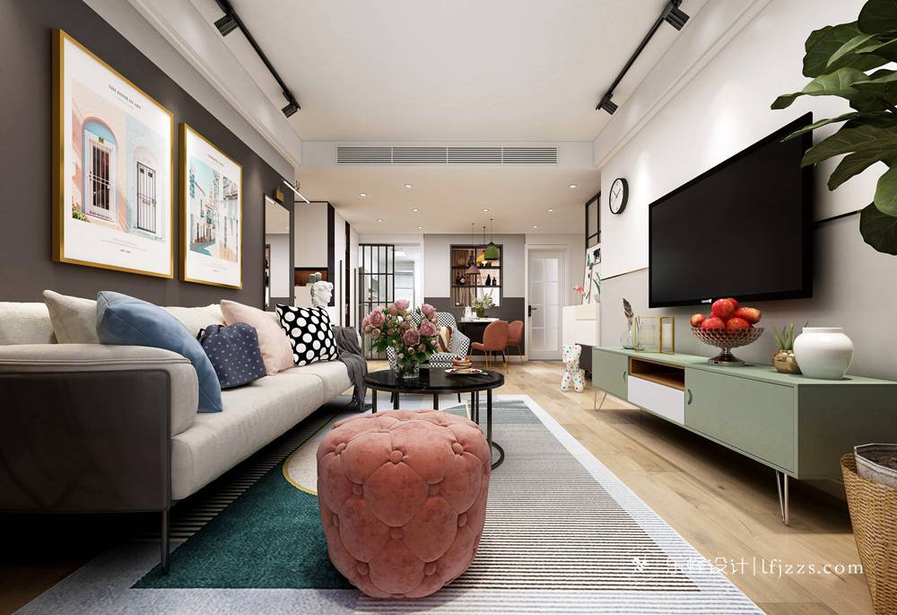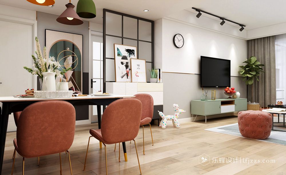 本案是北歐撞色風格,因業主喜歡這種絢麗的色彩搭配,所以本案與其它的北歐風格不同,其實還蠻好看的。