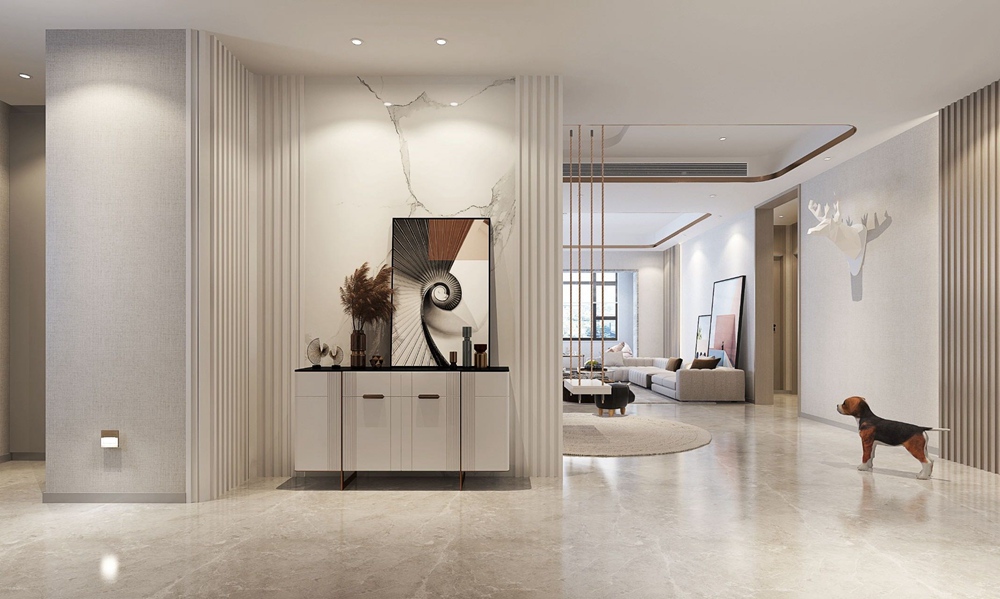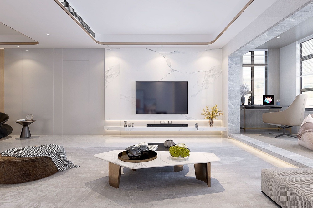本案為現(xiàn)代簡約風(fēng)格,整體空間以現(xiàn)代優(yōu)雅為基礎(chǔ),運用新的現(xiàn)代主義設(shè)計手法,巧妙地將空間、文化與生活藝術(shù)相結(jié)合,營造出一個現(xiàn)代時尚的輕奢空間,彰顯奢華內(nèi)斂的人文氣息,它通過塊和線的造型更具包容性。