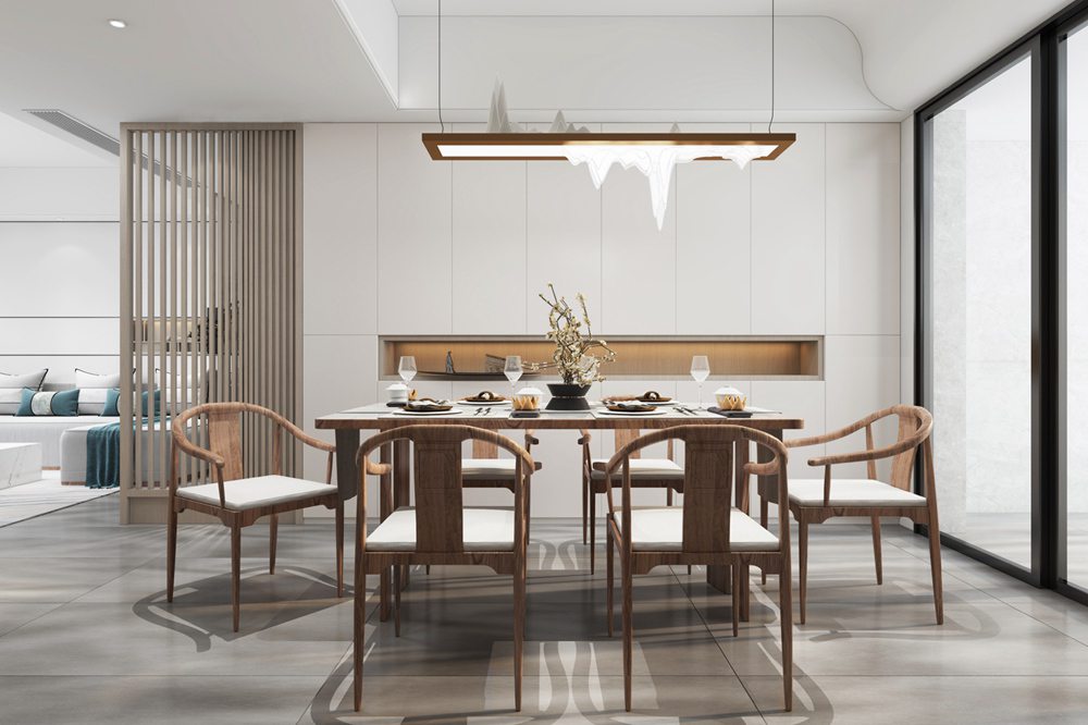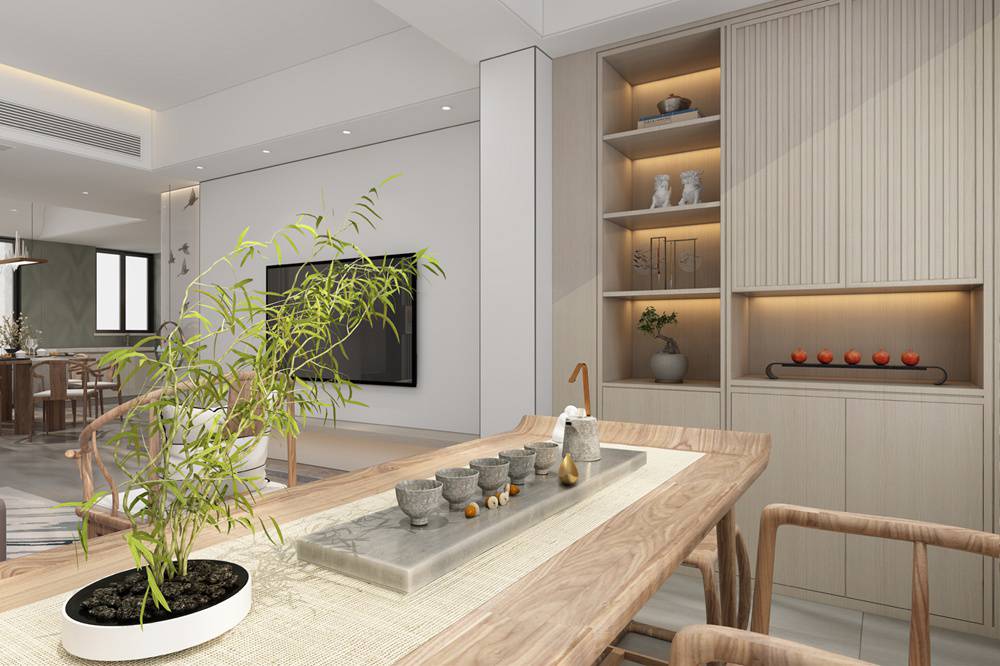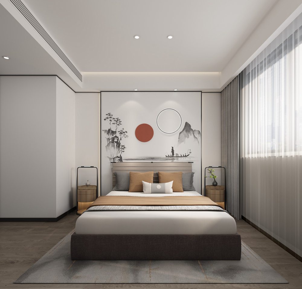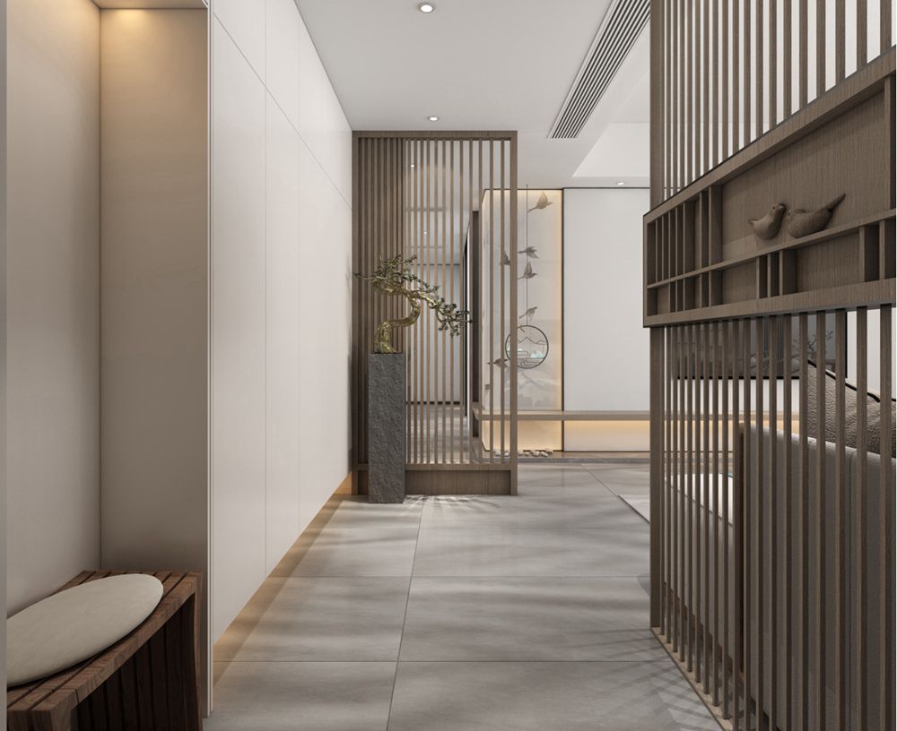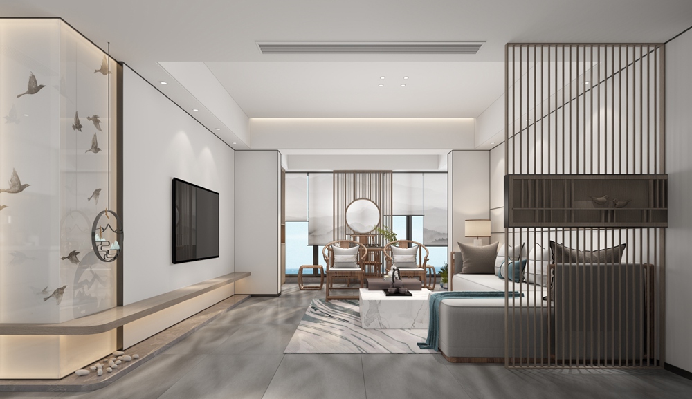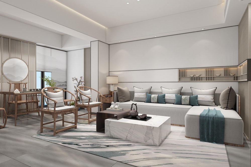 新中式風格從簡單到繁雜、從整體到局部,精雕細琢,鑲花刻金都給人一絲不茍的印象。一方面保留了材質、色彩的大致風格,仍然可以很強烈地感受傳統的歷史痕跡與渾厚的文化底蘊,同時又摒棄了過于復雜的肌理和裝飾,簡化了線條。