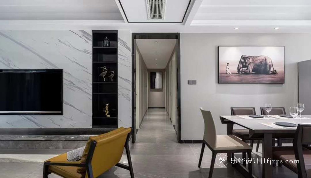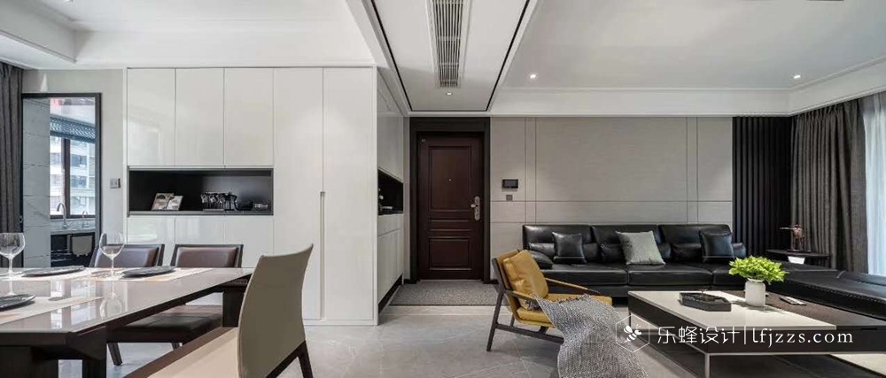 本案空間造型設計簡約流暢,運用簡潔而非對稱的直線和不銹鋼線條來塑造空間的立體感。色彩簡約,空間以白色為主基調,摒棄傳統的吊燈,使用點光源的筒燈,使燈光更有層次感,整個空間的燈光也更柔和。再搭配墻磚的質感和高純度色彩,來引入一種時尚感。