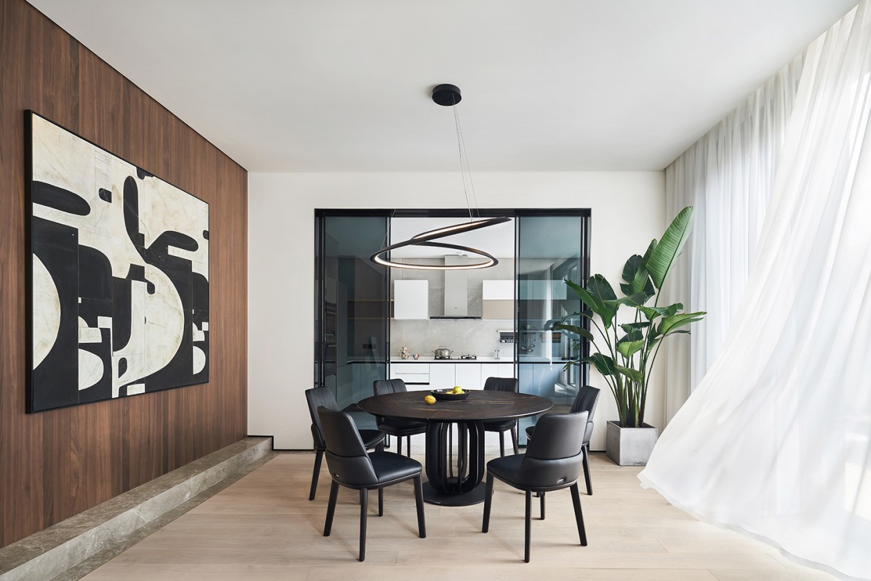 一個溫情的家,需要一個空間承載生活點點滴滴的小事兒,重視和品味來源于生活中,茶歇飯足,食之所悅,望望小院的景色,久倦了城市的塵囂,歸家擁抱“暖春”,最溫情的在于家所帶來的歸屬感。