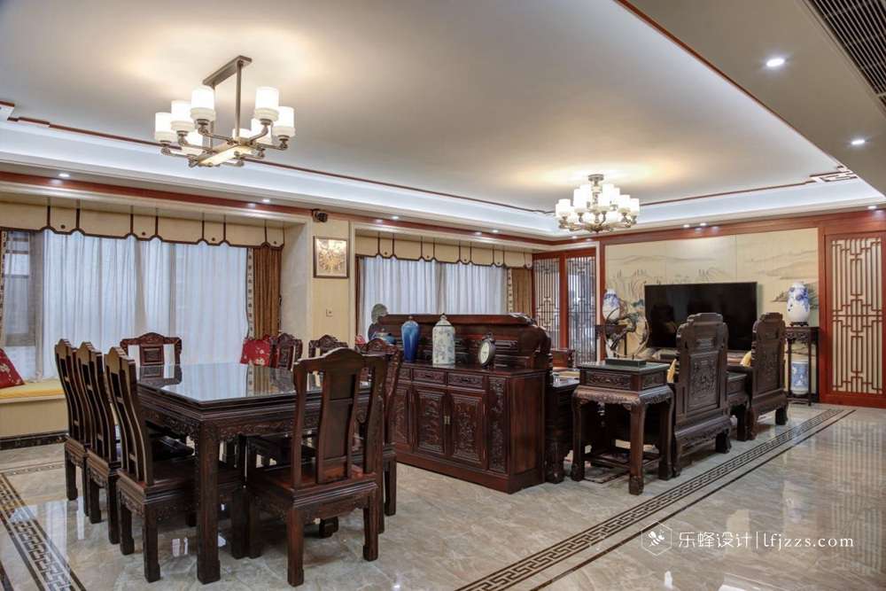 本案是中式風(fēng)格,通過(guò)天花地面,將空間功能區(qū)區(qū)分開來(lái),木線條讓整個(gè)家顯得莊重大氣,紅木家私讓整個(gè)家看起來(lái)更加沉穩(wěn)。