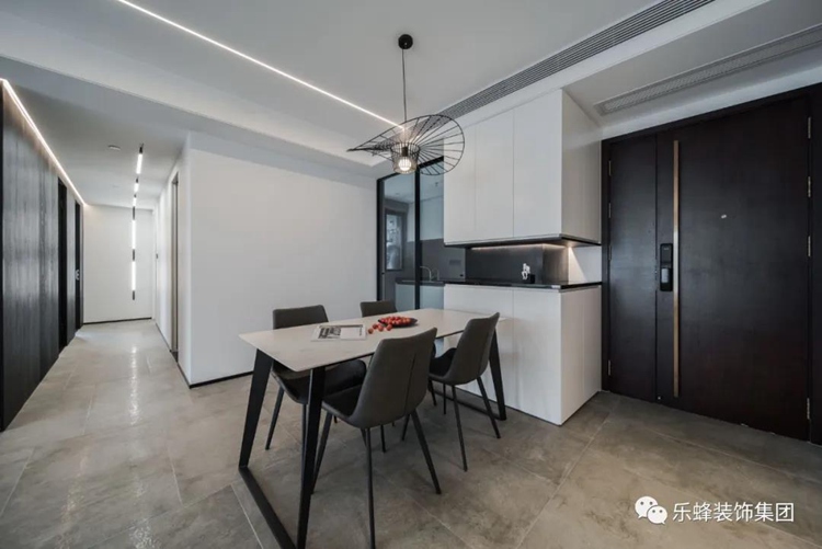 全屋沒有過多繁雜的修飾,反而能讓浮躁的心沉靜下來。整體以黑、白、灰、三色調的融合流暢高級。