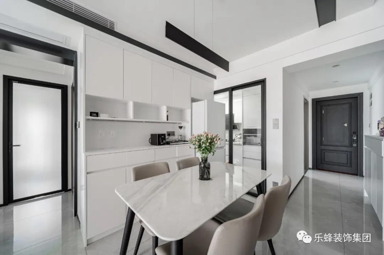 櫥柜、衛生間手臺、增加黑色邊框,提升空間體積感與高級感。
