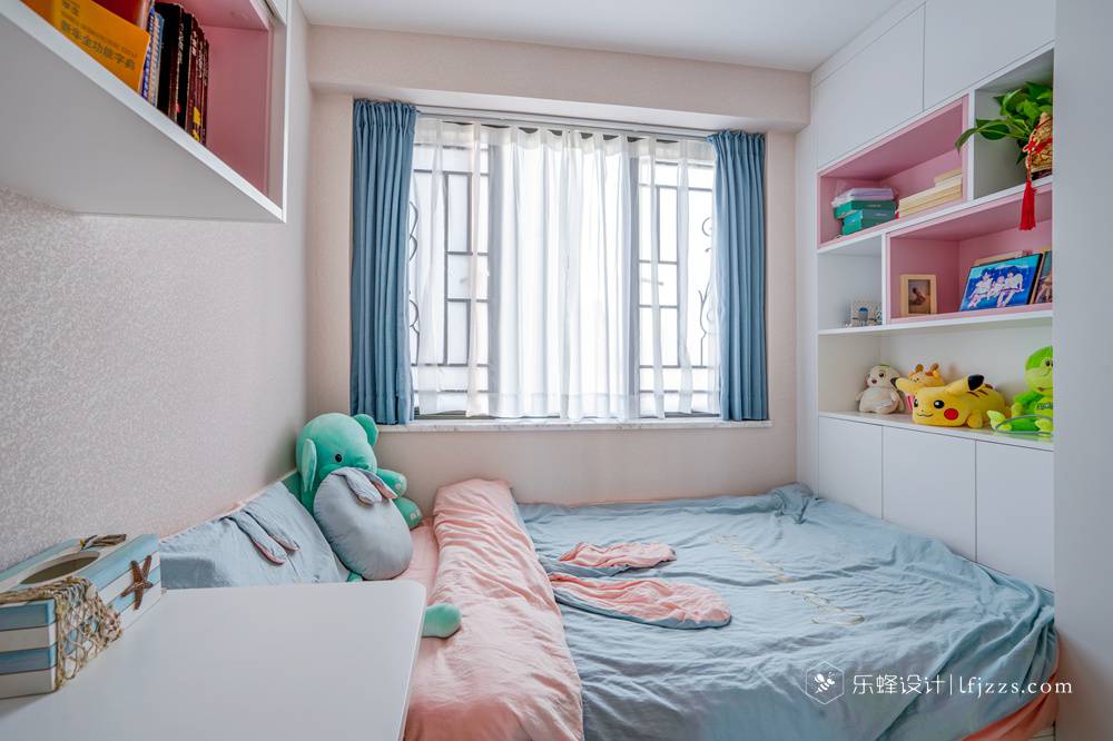 榻榻米越來越多的被使用,小孩子的玩具多,在收納方面可以起到更大的作用,淺粉色的墻面,柜子粉色與白色的完美搭配,守護著孩子的童心。