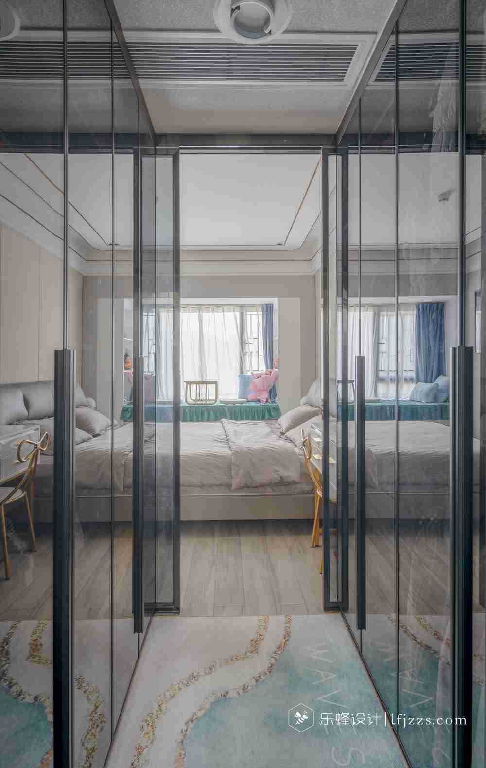 衣帽間與浴室相連,平時洗澡的時候也很方便的拿自己的衣物,采用黑框透明的玻璃,看上去更美觀也更加方便的看到自己想拿到的衣物。