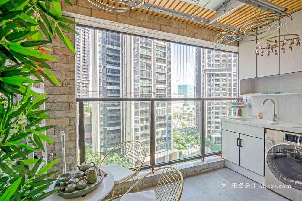 陽臺上面擺上一組茶具,旁邊種上一抹綠植,一大塊的落地窗,平時三五老友過來喝喝茶,曬曬太陽,豈不是很愜意。