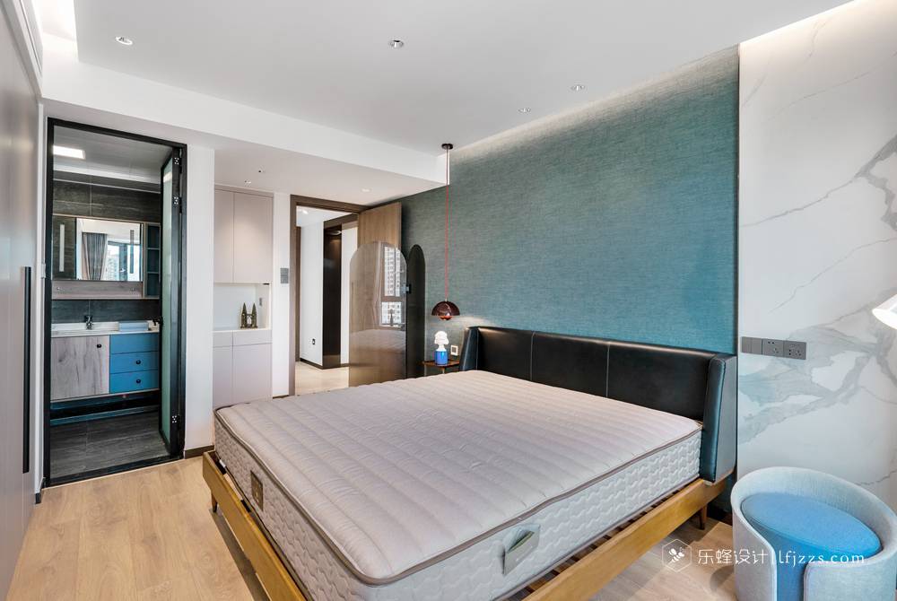 主臥設計也做了大的改動,設計原本床頭是朝洗手間的方向的,由于風水問題,所以把床頭改到我們洗手間的另一側。