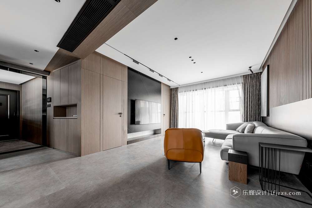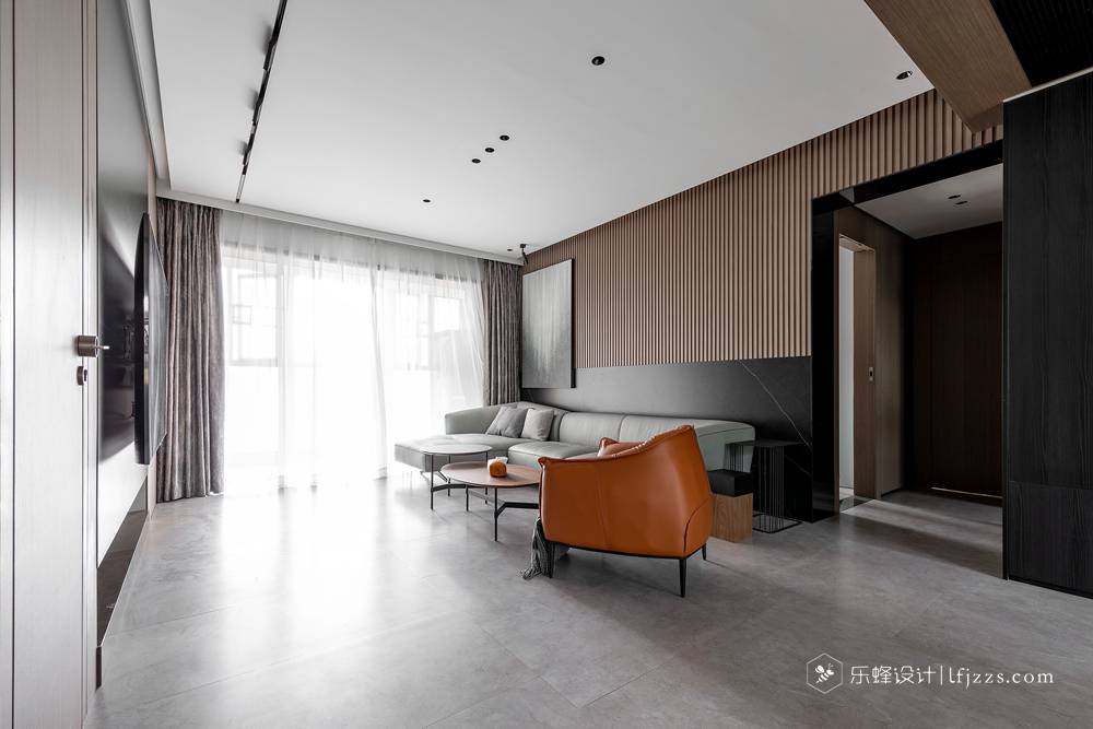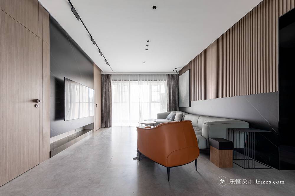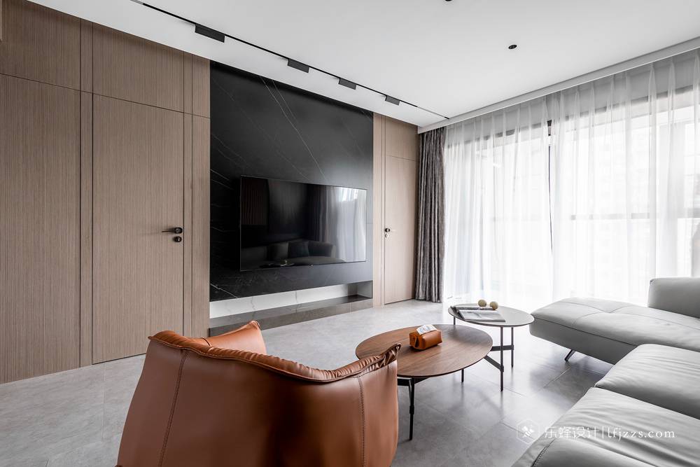 客廳背景墻試過幾個造型,電視使用懸掛的樣式,背景用上純黑色和木色的拼接,形成色階的層次感,給人帶來特別溫馨和溫暖的感覺。