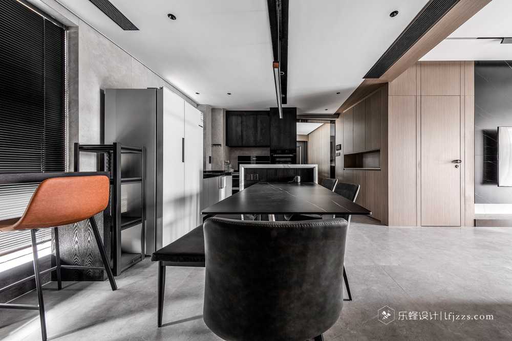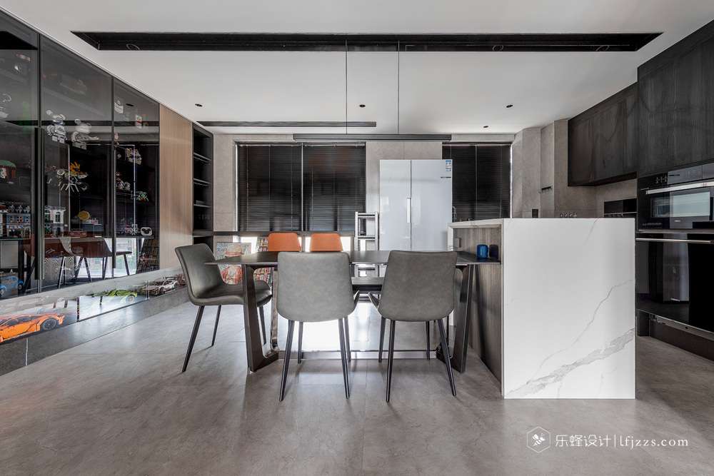 餐桌椅選用了看起來比較時尚的造型同時顏色選取了跟整個空間比較搭配的顏色,餐廳跟廚房做成一體,顯得整個空間更加的大氣,讓平時烹飪的味道彌漫整個空間,給這個家帶來更溫馨的氣息。