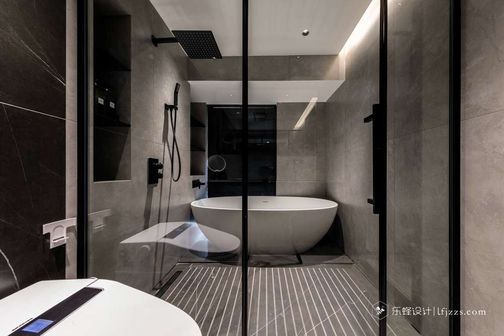 墻面采用深色的石材與地板完美的融合在一起,采用干濕分離的形式,把浴室跟洗手臺分割開,浴室采用超大的浴缸,下完班可以回家躺在浴缸里面釋放全身的疲憊。