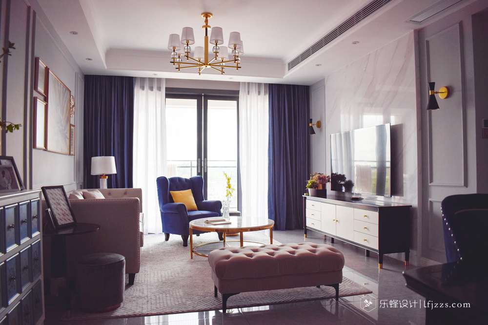 方案以整體空間更加開闊為主,背景墻面裝飾采用了經典的壁爐造型,突出整個空間的氛圍感而其他地方則選擇乳膠漆為主,在特定位置點綴不同的顏色,配上美式的家具和燈具,突出風格氛圍。