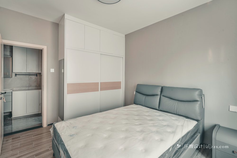 主臥床采用灰色色調(diào)與木地板的完美搭配。柔和的色彩、潔凈的清爽感,步入臥室讓人得到了徹底的放松。搭配上撞色的木質(zhì)衣柜,材質(zhì),色彩兼容,比重拿捏得當(dāng)。每個(gè)細(xì)節(jié)的鋪排,都呈現(xiàn)出令人舒適的氣氛。