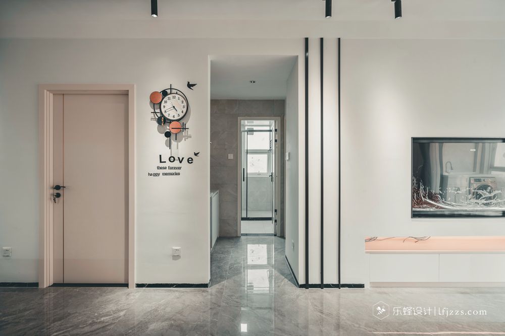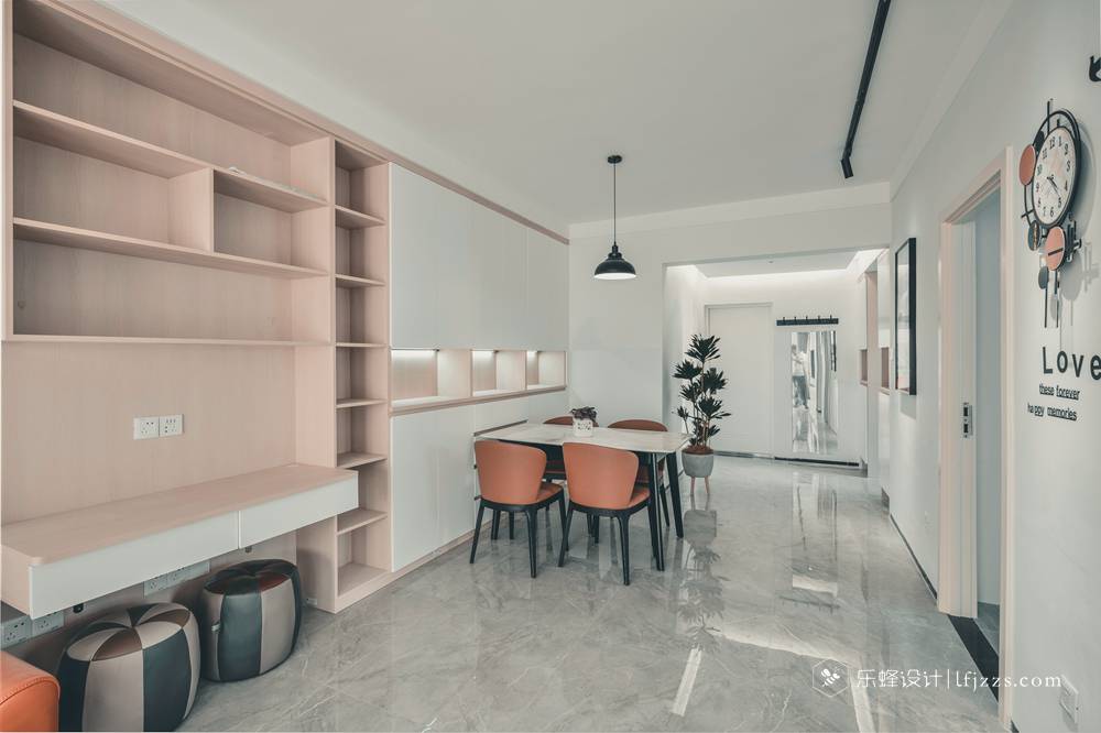 為了增加客廳的活動(dòng)空間封閉了原有的外陽(yáng)臺(tái)將活動(dòng)空間納入客廳。全屋的配色都是以白色,淺粉色搭配。
