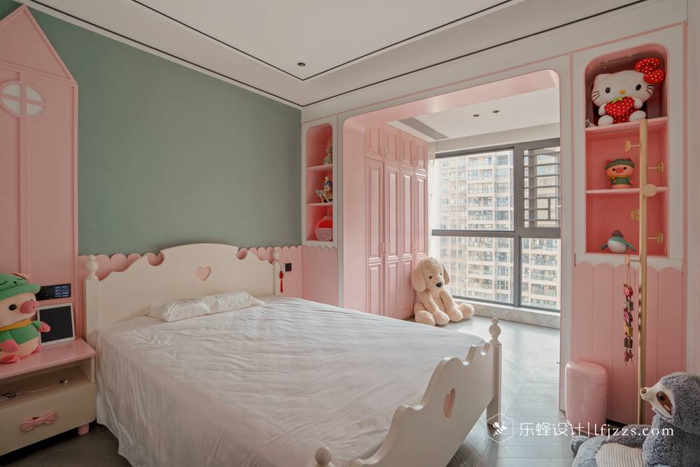 兒童房采用整體的粉色,讓孩子一走進來,仿佛回到他的童話王國,實現他美麗的童真夢。