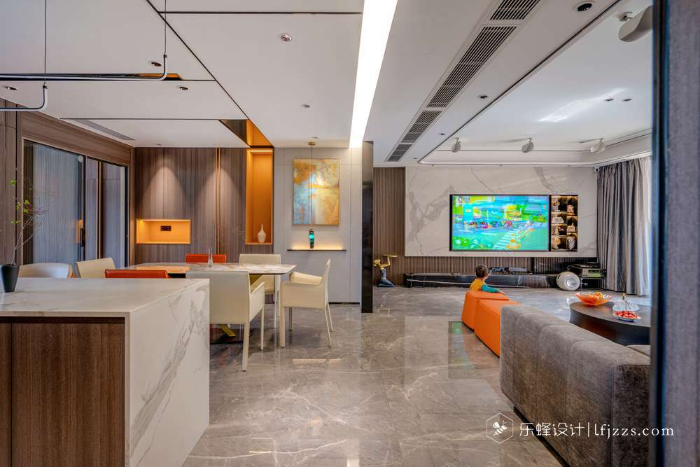 根據客戶對現代輕奢的喜好需求,通過線條勾勒出輕奢的細膩優雅,軟飾上暖意渲染活潑明麗的氛圍,流動溫柔如水的浪漫。