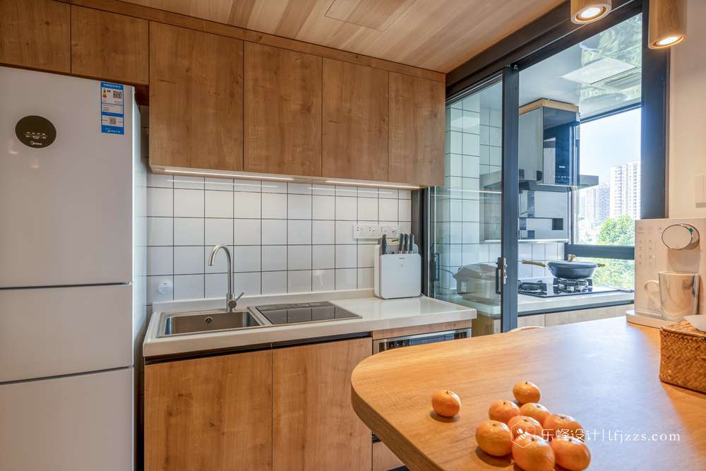 廚房用推拉門把烹飪區與洗菜區做了隔斷,避免油煙問題。