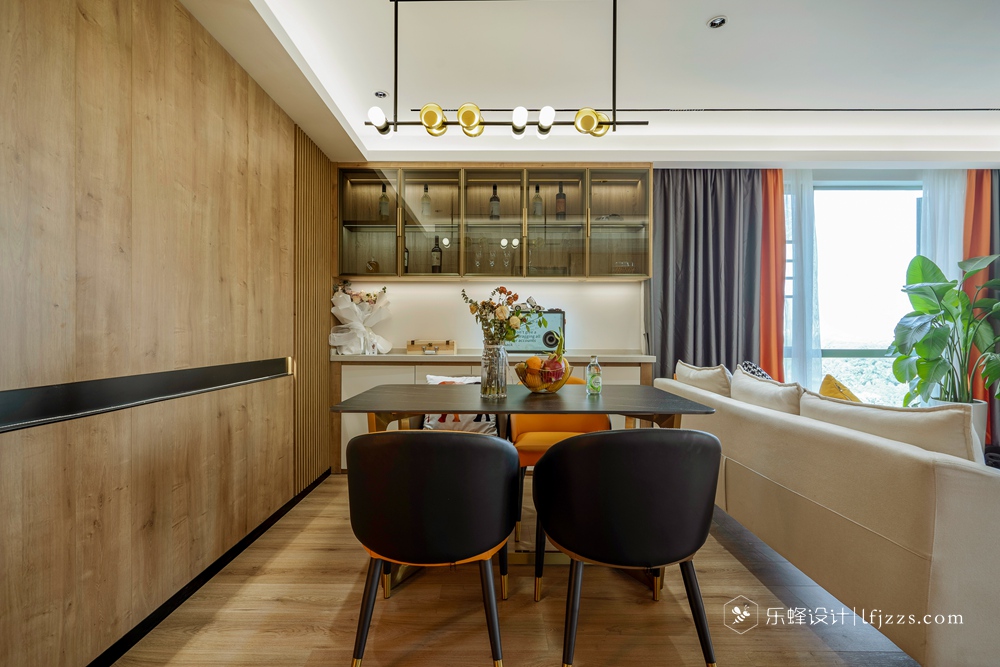 餐廳柜子實木拉手搭配,酒柜造型時尚簡單的飾品因其純凈的色彩亦使空間多了幾分時尚元素。