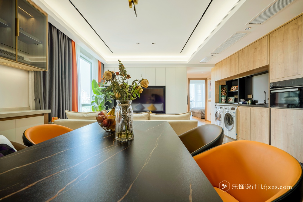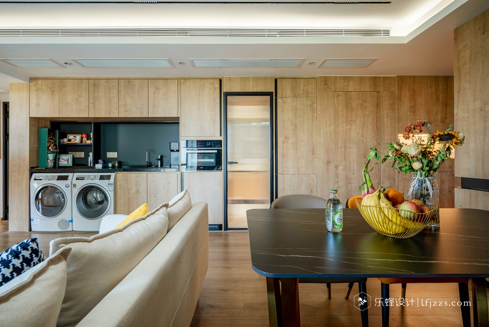入戶門左手便是客廳區域,開放式的布局,讓視野更開闊,生活動線更加流暢,讓原本略顯嚴謹的日式空間生動有趣起來。