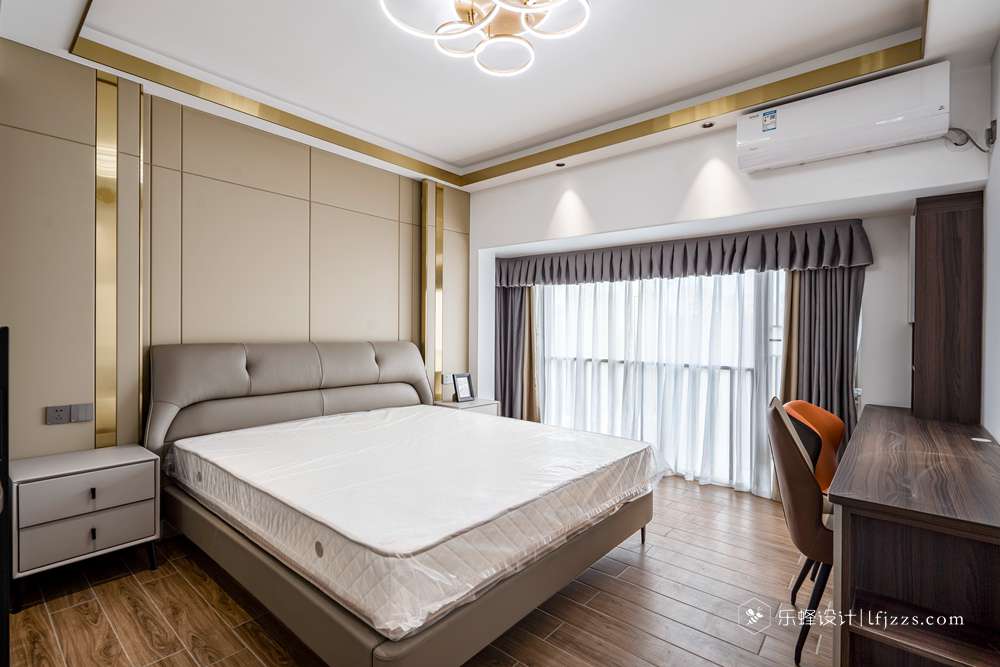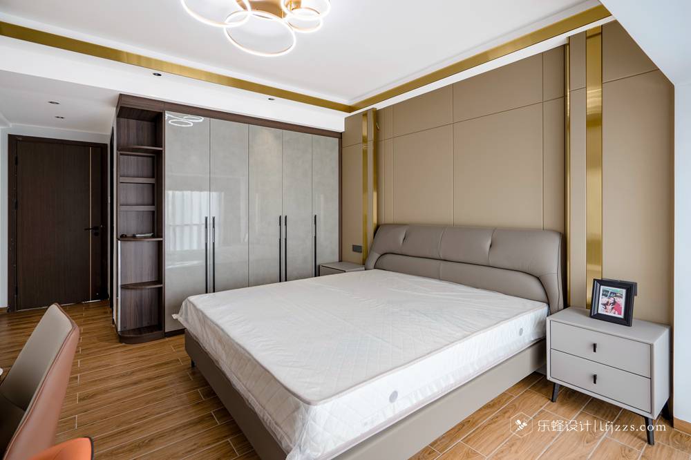 主臥做了一點點復古的木質品,背景墻采用軟包配合金屬線條搭配,看起來復古中透露出一點奢華。