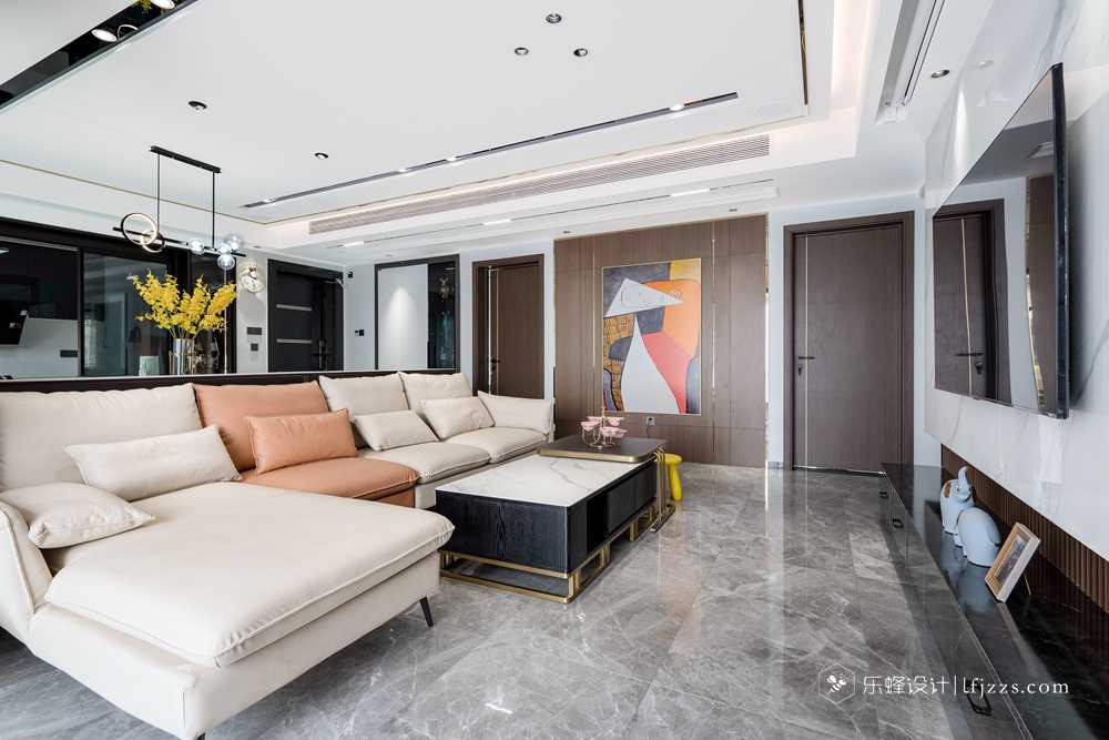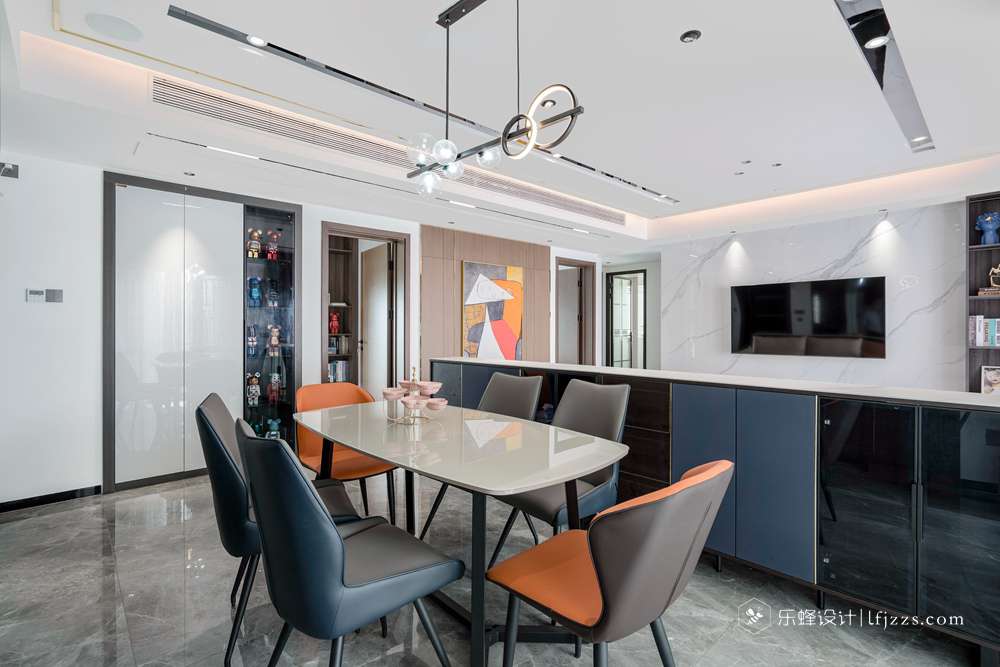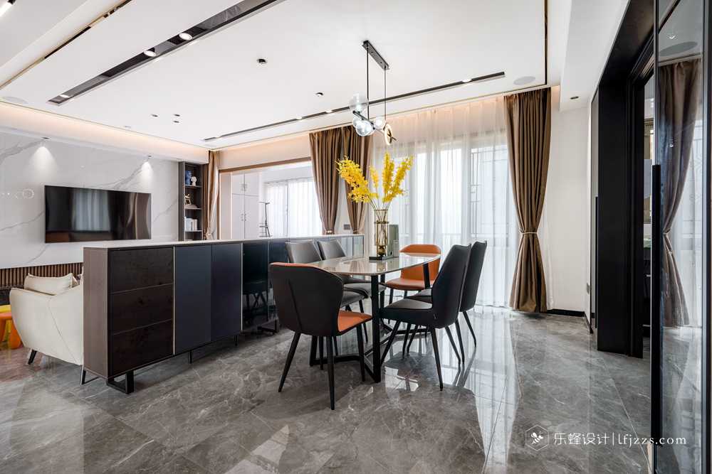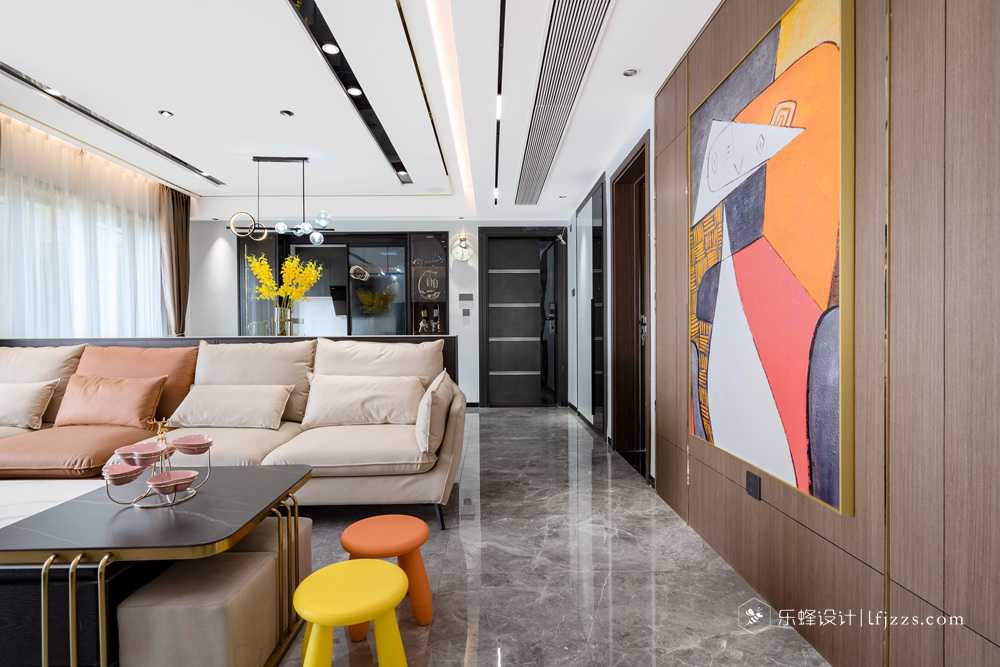 裸色系大塊瓷磚,方便打理又看起來非常的高級奢華,撞色沙發,慵懶又舒適,深淺的色調過度非常吸睛,酒柜設計略帶輕奢的味道,整體顏色搭配有輕有重,很有時髦感并且耐看不過時!