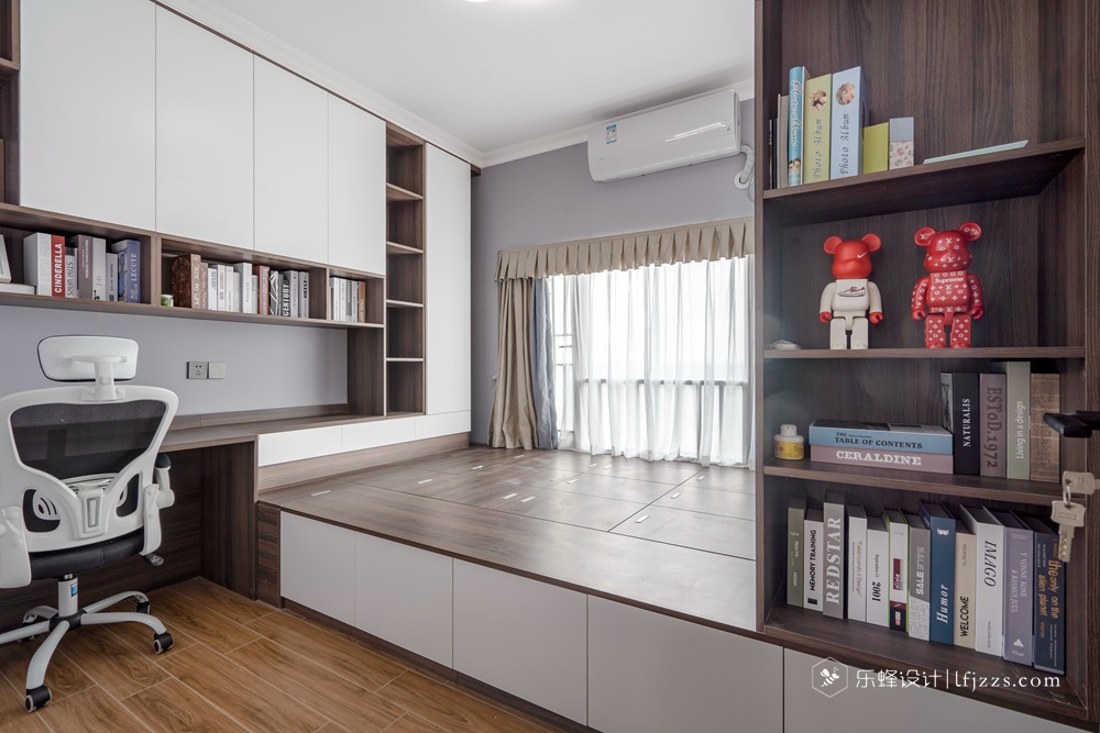 采用傳統榻榻米,孩子伸手就能打開衣柜,書桌連接衣柜一體,休息區與學習瞬間都滿足,考慮以后小孩子成長,在風格和單品的選擇上盡量采用一點原木的,不會過時,日后增加不同風格的軟裝也不會顯得突兀。