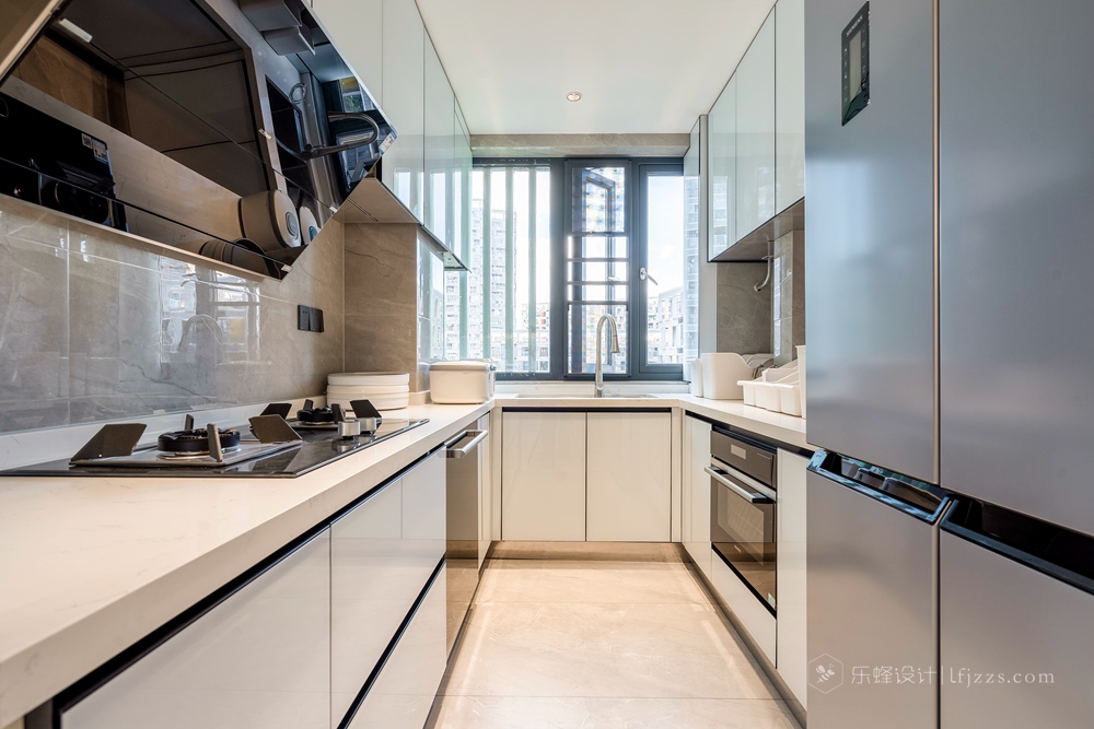 廚房U字型臺面最大程度上擴充了處方單操作面積,更加優化了拿洗切炒一系列廚房任務的動線,各類電器各有其位,各司其職