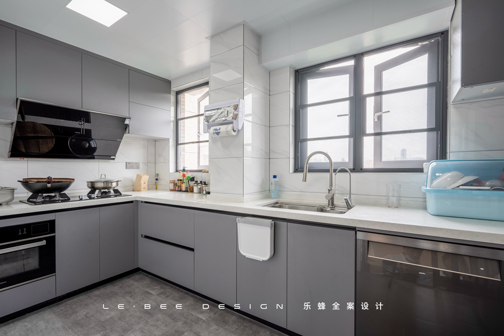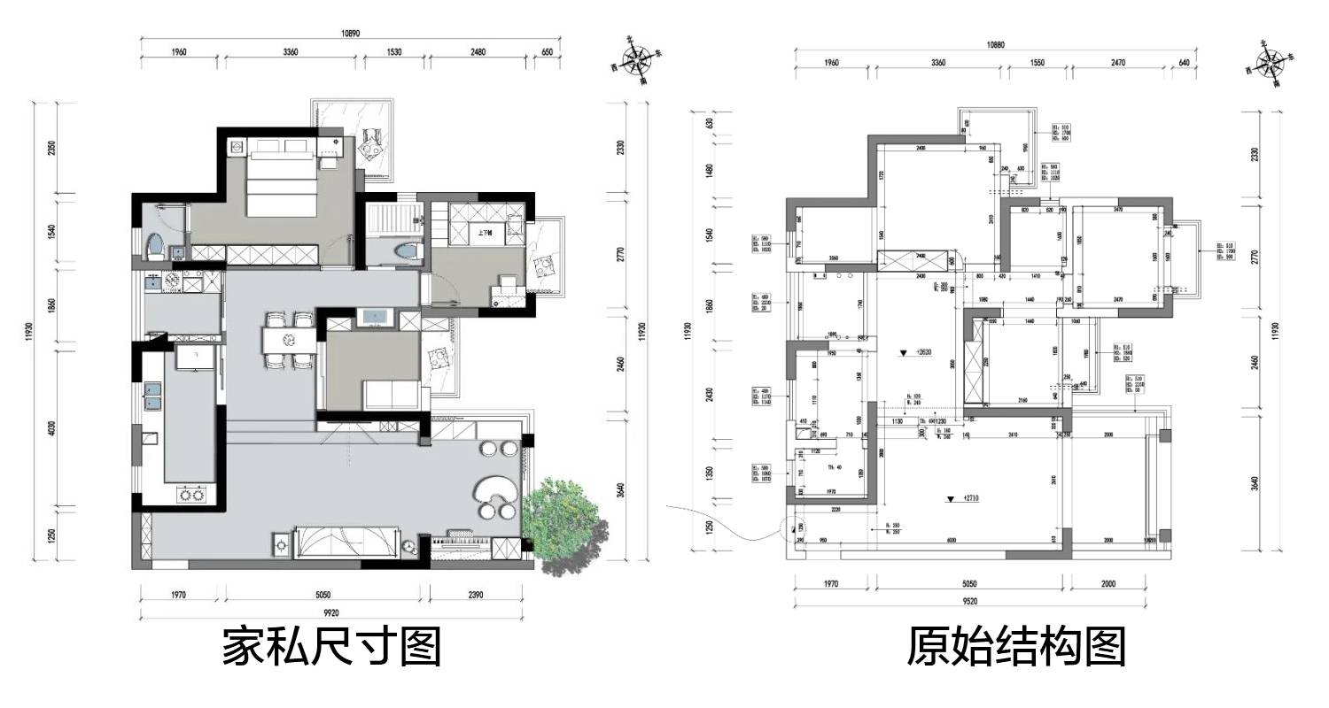 本案是二次裝修的案例,是錯層戶型客廳陽臺和其他區(qū)域有臺階錯開,整體的客餐廳都采光不佳,廚房的空間也比較小