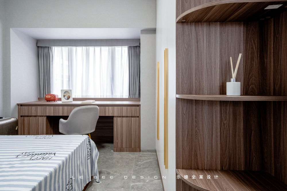 次臥延續了整體的色調,體現了屋主對生活更精細的追求。